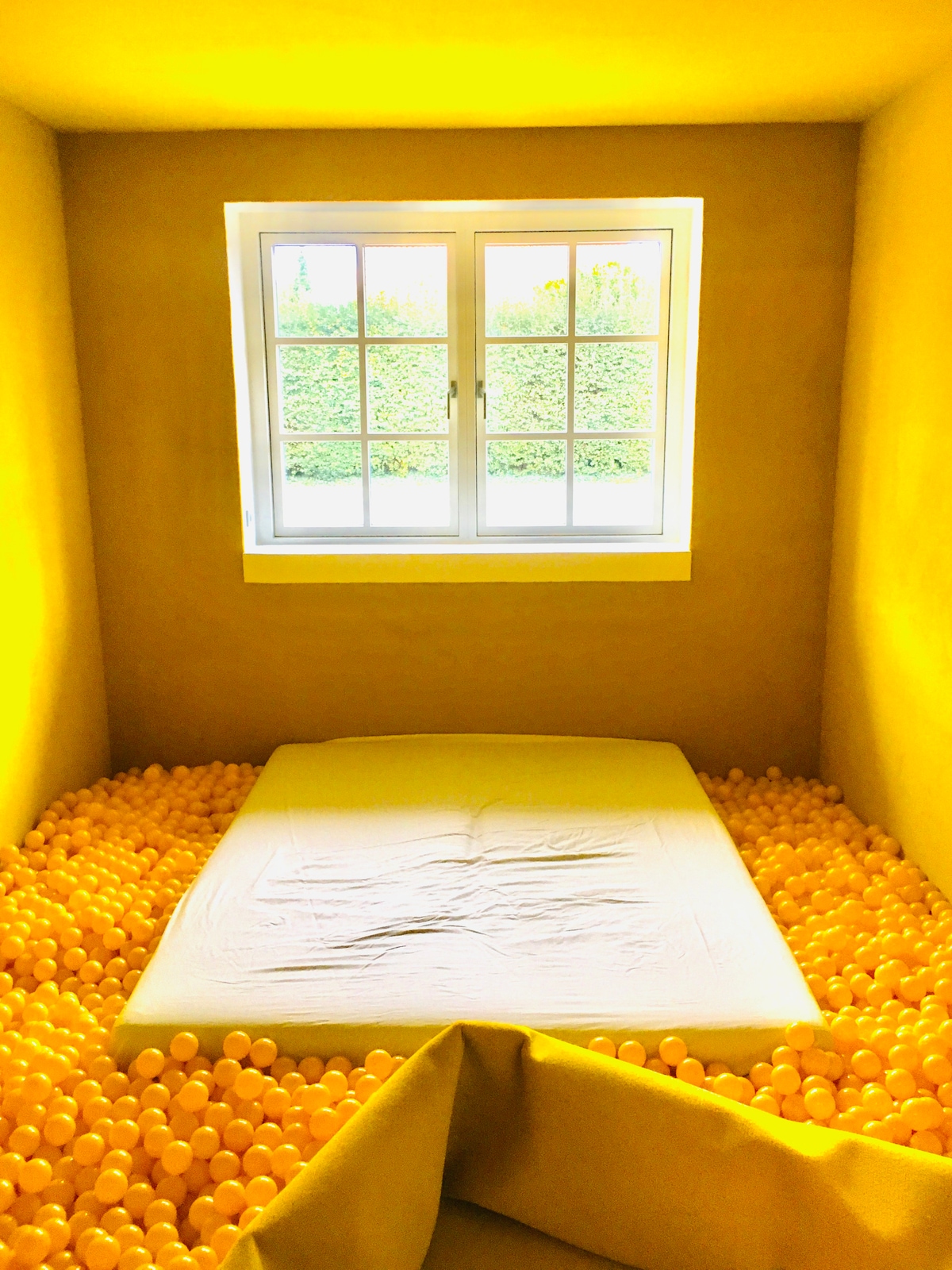 The Ballroom is a fun and playful room, with carpets on all surfaces, and no interior other than the bed and the balls to play in. This room is for the single parent with a kid(s) who wants a sleepover on the children terms. Or for the playful single/couple, who feels adventurous and wants to try something completely different. Where else do you get the chance to sleep and play with so many balls in one night?