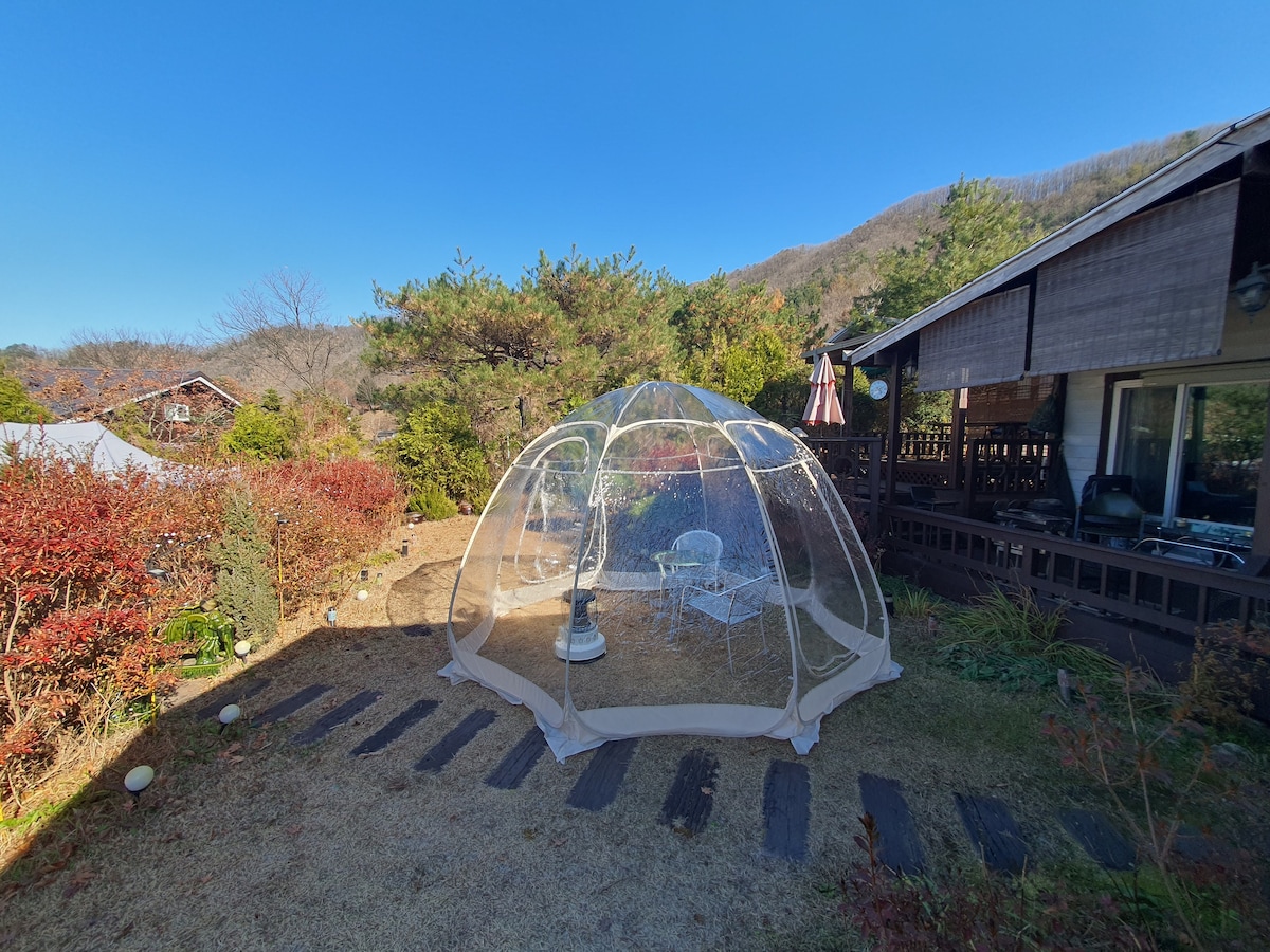 아름다운 풍경마을 😀 서울에서 1시간거리 비발디파크 7분거리 강 가까운 숲속의 이쁜 전원 주택 비대면 입니다^^ 전체170평, 잔디 정원 120평 아늑한 주택15평 이쁜데크 10평,바베큐 가능! 눈,비 걱정 없어요 😄 전용 주차공간 2대 방 하나/거실/주방/욕실 기준2인(최대4인) 1인추가,방문포함: 3만원 반려견 8킬로 이하만 가능 요금: 1마리 3만원 1마리 이상 별도 꼭 문의요망! 가족,연인,친구와 비와도 바베큐,불멍 걱정 없어요 밤하늘 별과,새소리,강물 소리듣고 전원주택에서 캠핑하듯 쉬면서 불멍도 하고 힐링 해봐요 럭셔리 아니니 촌캉스 힐링하러 오시고요 와이파이 안되요 😀 겨울은 온도만 올리면 찜질방 처럼 사용 가능 😀 겨울에는 집 안에서 식사 및 요리 하셔요 추워요 ^^! 체크인: 오후3시 이후 첵아웃: 오전11시 이전 다른 게스트가 있어요 반드시 준수 바랍니다! 행복한 인생...