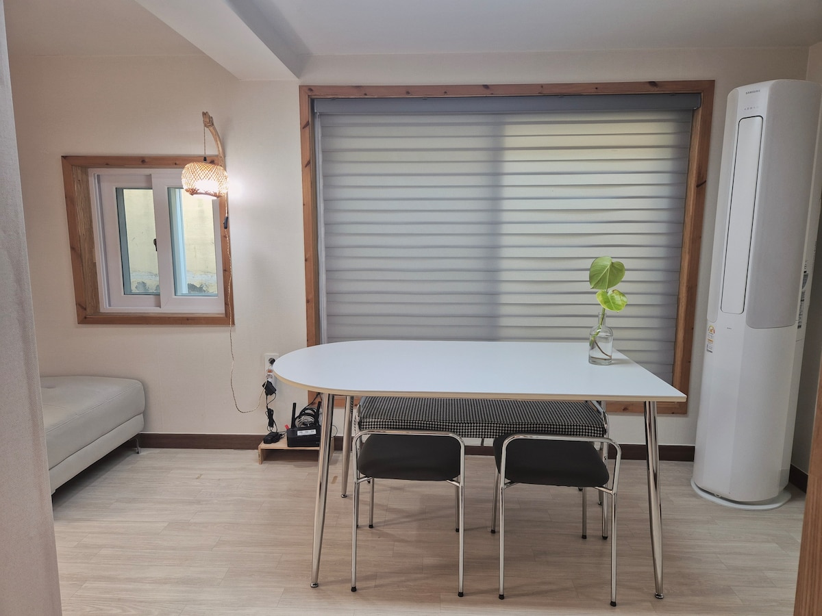 주요 관광지 인근에 위치하고 있는 이층건물에 일층 스테이예요. ✨ 감성적인 화이트 & 우드 인테리어의 아늑한 숙소 ✨ 여행이 끝난 뒤 모두가 “여길 선택하길 정말 잘했어!”라고 말하게 될 곳👍 넉넉한 **3개의 침실과 2개의 욕실**을 갖춘 이곳에서 편안한 휴식을 즐겨보세요! 🏡💛 ✔ *마스터 베드룸* – 더블베드 & 전용 욕실(샤워부스 포함) ✔ *두 번째 침실* – 편안한 더블베드 .요 이불 추가 가능 ✔ *세 번째 침실* – 슈퍼싱글 2개(이층침대)로 구성된 공간 🚿 **욕실** 마다 샤워부스가 마련되어 있어 더욱 쾌적하게 이용하실 수 있습니다. 🛏 **최대 성인 8명**까지 숙박 가능! 📍 **황리단길까지 차로 5분, 도보 20분** – 경주의 감성을 느낄 수 있는 최적 위치! 🚗 숙소 바로 앞 **공용 무료 주차장 ** 이용 가능 감성적인 인테리어와 편리한 접근성을 갖춘 우리 숙소에서 특별한 시간을 보내세요! 🌿🏡