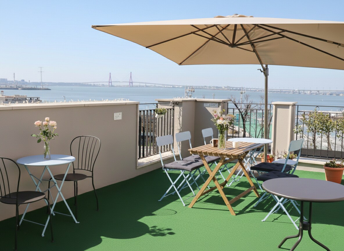在房间和露台上欣赏永宗岛的海景和风景 尽情享受 (客厅、独立卧室、大露台)