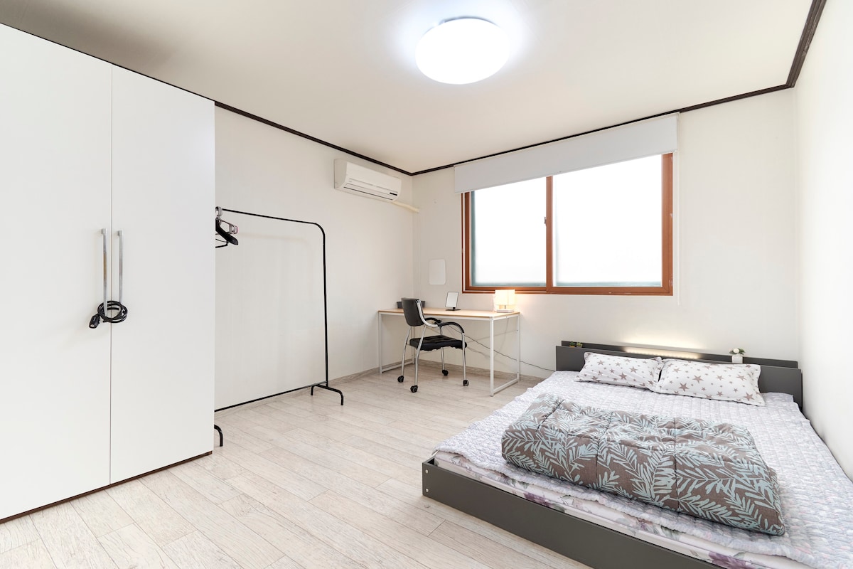 ★ Entire house rent! (2nd Floor, No lift, 14 stairs) ★ 1 Stop to Hongdae by subway ★ 3mins on foot from Digital media city station(Arex & subway line#6) ★ 3 rooms + 1.5 restrooms ★ 4 Beds ; 2 queen + 2 super single ★ Free Luggages Keeping ★ Flexible Check-in time (no guarantee) ★ Free Welcome Food ★ Free garage cleaning service ★ No parking (public parking lot with 3 mins walk)