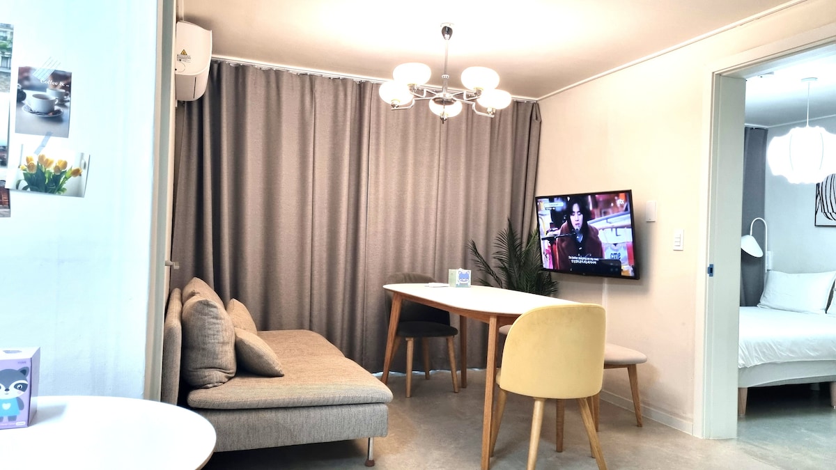 舒适。2间卧室, 3张床。弘大站4分钟