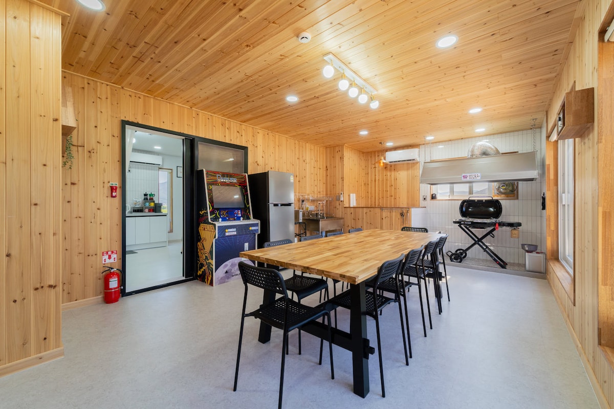 A private detached country house in Yangpyeong offering the best of both worldsโpeaceful natural surroundings and easy city access. Enjoy open views by day and calm nights. The home features a spacious garden and private BBQ area ideal for families or small groups. Guests have exclusive use of the entire two-story house with freshly washed bedding for every stay. Yangpyeong Station, downtown, and Lotte Mart are just a 5-minute drive away, with nearby parks for relaxing walks.