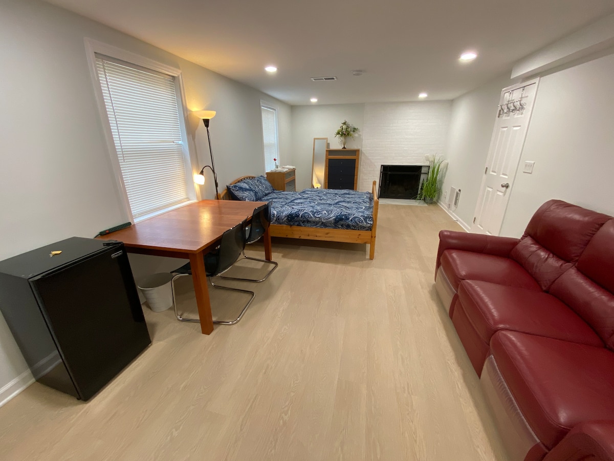 Spacious one bedroom basement apartment. Private entrance, full bathroom and kitchenette all newly done. Freshly landscaped slate patio with garden and pond. The sound of running water provides a relaxing environment. Secluded back yard backs up to beautiful woods. 5 min away from bike trails. Large, open living space with sectional couch, and attached eating area with a table that can double as a work station. Centrally located in Montgomery County-approx 40 minutes from DC/Baltimore/Frederick.