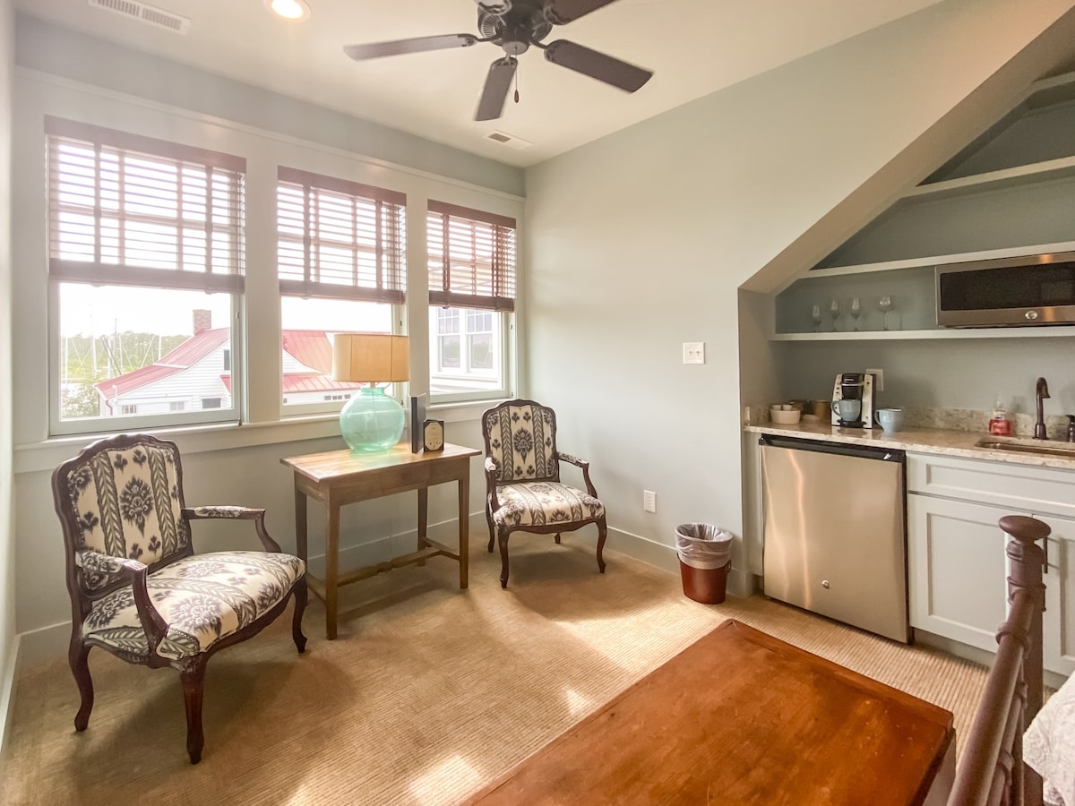 Be among the first to enjoy Harborview Retreat, a waterfront Carriage House located in the picturesque Southern Living inspired boating community of River Dunes, NC. Designed by Lifestyle Blogger and Interior Designer, Celia Becker of After Orange County in her signature “vintage-chic with a touch of modern” design aesthetic. This uber charming studio apartment provides all the appointments of a fine boutique hotel along with fantastic views of Grace Harbor and its daily parade of boats.
