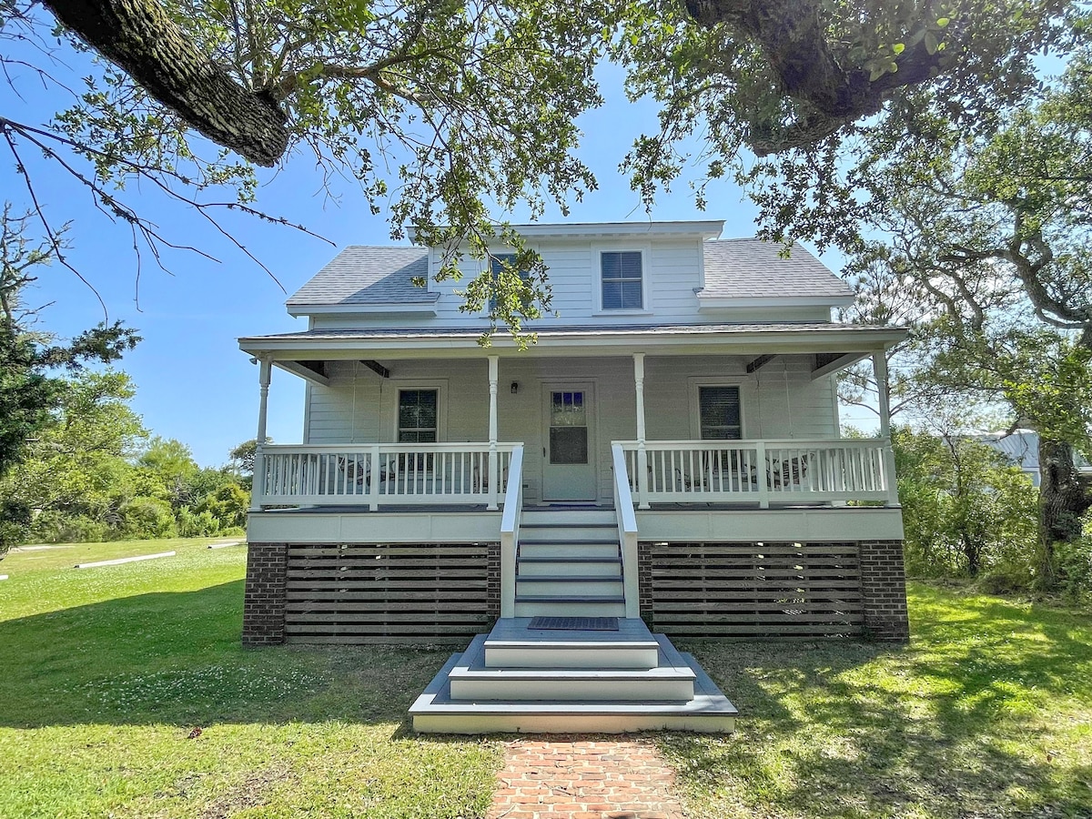Welcome to The Grey Pearl, a wonderful historic Ocracoke cottage that is conveniently located in the heart of the village. Pearl offers a spacious open floor concept featuring connected Kitchen, Dining and living spaces- and a lovely screeded porch. It is located within walking distance to Silver Lake, Coffee/Juice spots, Restaurants and shops ! We are pet friendly with a 90% fenced in yard space. Some pet amenities provided. We would be honored to host for your family !
