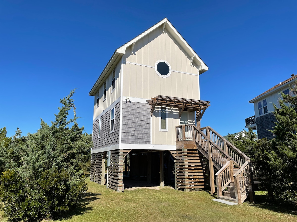 Open and airy feel to this home. Spacious rooms, sparking Gourmet Kitchen perfect for one or many cooks. Four Porches and Sundecks. One screened in porch. The views of the sky at night are remarkable. Fenced in rear yard with outdoor shower and outside sink prep area. The upper level has the great room with soaring ceilings, large living space with cozy furniture, half bathroom, card/game table, bonus room could be used as fourth bedroom with sofa-bed.