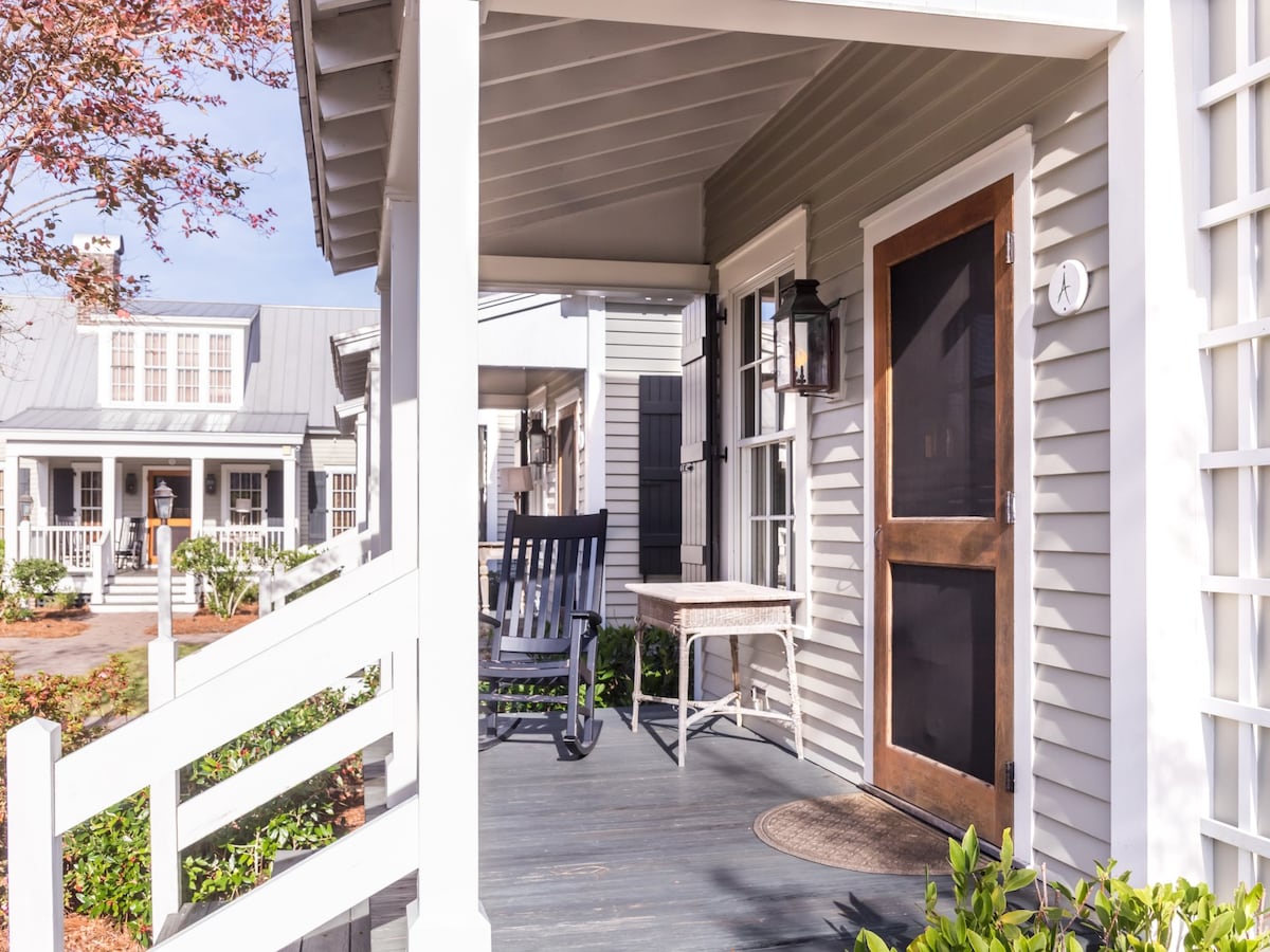 Little Pearl Cottage is a one bedroom, one bath weekend getaway part of the Southern Living Inspired Community on Boathouse Row. This cottage is furnished with a king size bed, comfortable sitting area, kitchenette and table as well as basic cable and Wi-Fi. Screened porch and shared fire-pit overlook the harborview location.