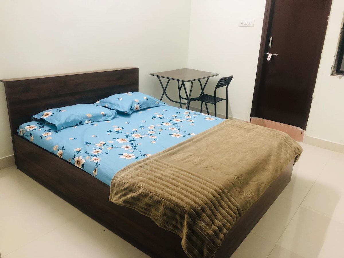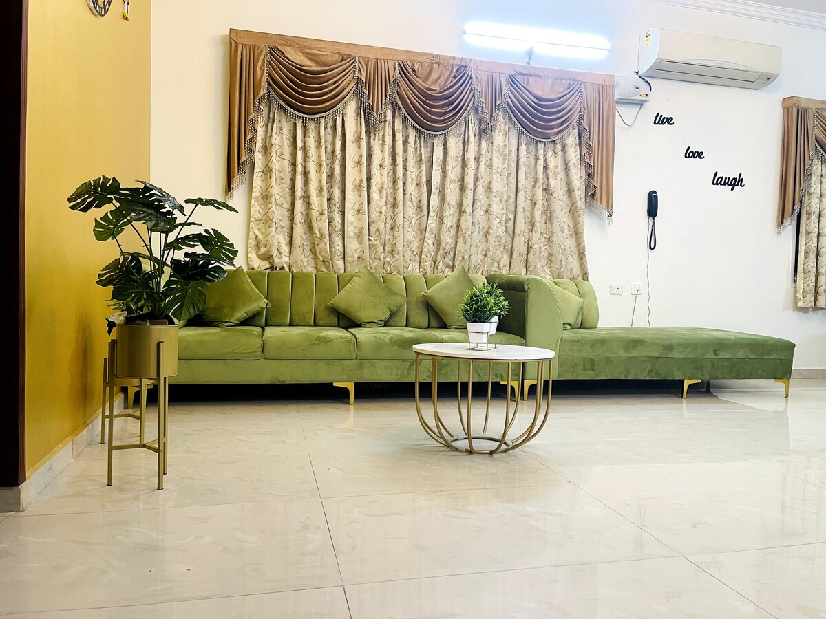 Welcome to your ideal home away from home. Our apartment is on the first floor of the villa without a lift, exclusively for the families only. Unmarried couples and Bachelors are restricted. Our apartment is spacious. A/C in both the bedrooms, with attached bathrooms. Featuring two spacious bedrooms, our retreat ensures a peaceful night's sleep . The master bedroom is with a king-size bed, while the second bedroom is with a queen-size bed, and two additional floor mattresses.