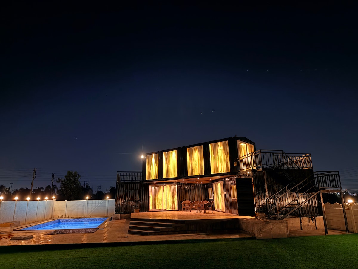 Relax with the whole family at this peaceful place to stay. with good ambiance, nature friendly, pollution free environment, complimentary wifi, pool facility, outer gaming zone, firepit, kids play area, small garden and party area, 4 luxurious bed rooms with attached bathroom, TV and outdoor gaming zone.