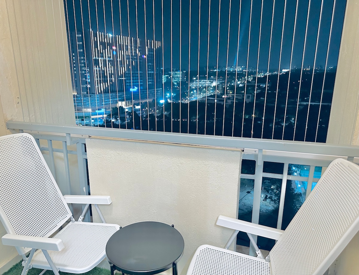 This is a loft style penthouse designed with a theatre (8 ft by 6 ft) screen, Bose surround with Amazon stick and recliner sofa set. Panoramic views of the 275 acre Botanical Garden (6th Floor) The bedroom - spacious attached with a jacuzzi bathroom. The balcony is a huge lounge area SHARED with the guests of the building. Hardly anyone uses it though. A second bathroom in lounge. Penthouse + Exclusive Lounge is another listing. Kitchnette / Full Kitchen set up depending on your needs.
