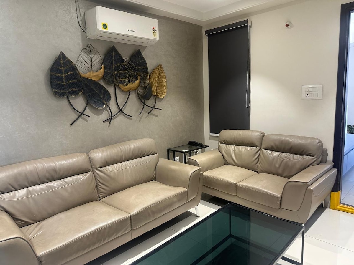 Relax with the whole family at this peaceful place to stay. The impressive Garden View welcomes you to a 3,500+ square-foot layout. Once inside, the huge SONY 4k TV in the hall makes it perfect for Movies. Three AC bedrooms, 1 Non AC Bedroom, and 1 AC in Living area, with a Surprised spacious sit-out area and Puja room.