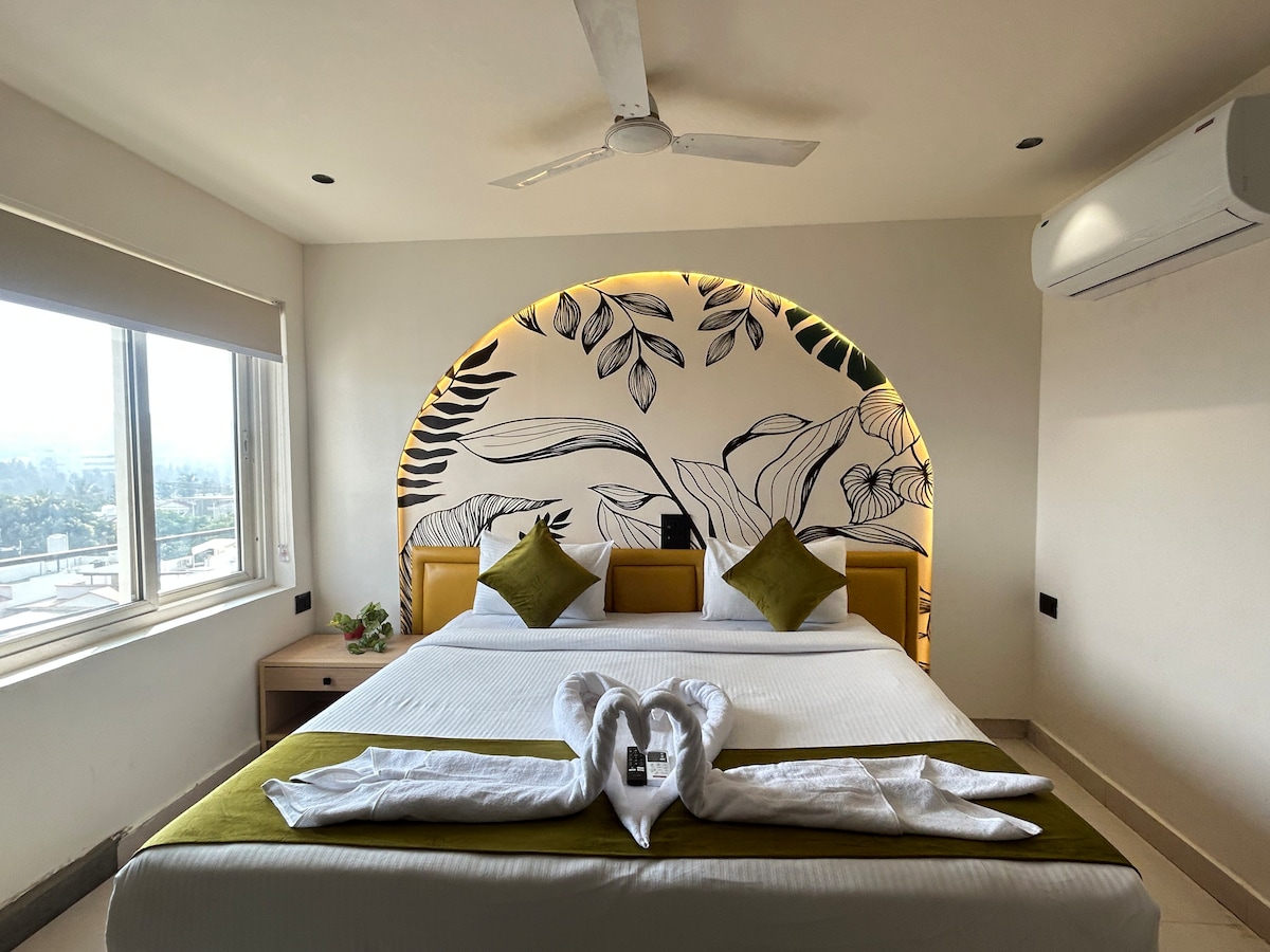 Experience luxury and comfort in our Executive Suite in Hyderabad, perfect for business travelers or couples seeking a premium stay. This elegantly furnished suite features a spacious bedroom, modern ensuite bathroom, high-speed Wi-Fi, air conditioning, and a dedicated work desk. Located in a prime area with easy access to IT hubs, shopping centers, and restaurants, it offers both convenience and class.