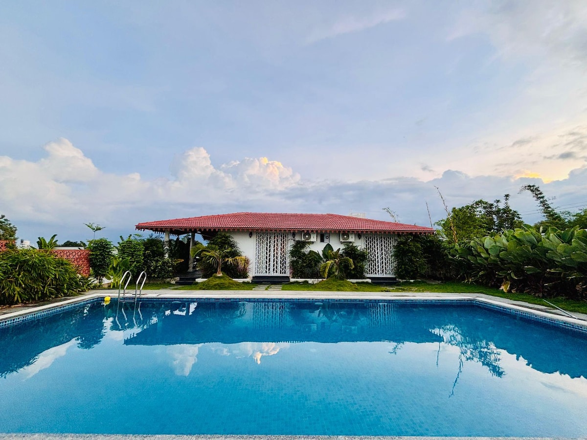 Experience the ECO friendly wooden cottage at KUKU FARM STAY . Which offers you Privacy Security Comfort. private pool , Food on order arrange by care taker In house kitchen . indoor out door game , music system with karaoke . Projector movie under the sky . Dedicated care taker during your stay . wake up to birdsong breathe fresh air and experience the tranquility that only rural life can offer .Whether you,re seeking a family retreat ,a romantic getaway ,or a peaceful escape from city .