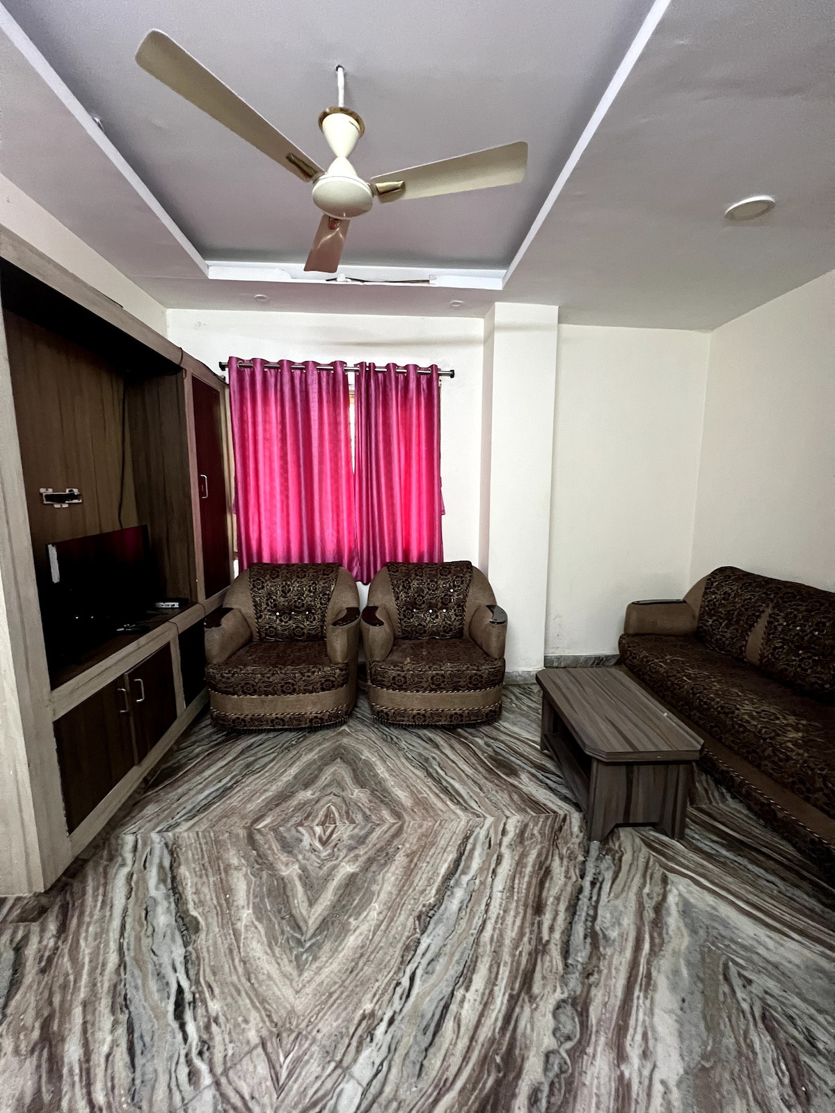Relax with the Executive and a peaceful place to stay. The centrally located place welcomes you to this 2 bhk Flat. Once inside, the 4k TV and Sofa set in the hall makes it perfect for Movies and relaxation. Seamless WiFi connection is perfect for your work. You have a Simple and useful kitchen and Dining table Leftside Spacious Master bedroom with king-size Bed and second Bedroom has a queen-size bed Both are having attached Bathrooms with air conditioning. Both the Bedrooms have Chilled AC.