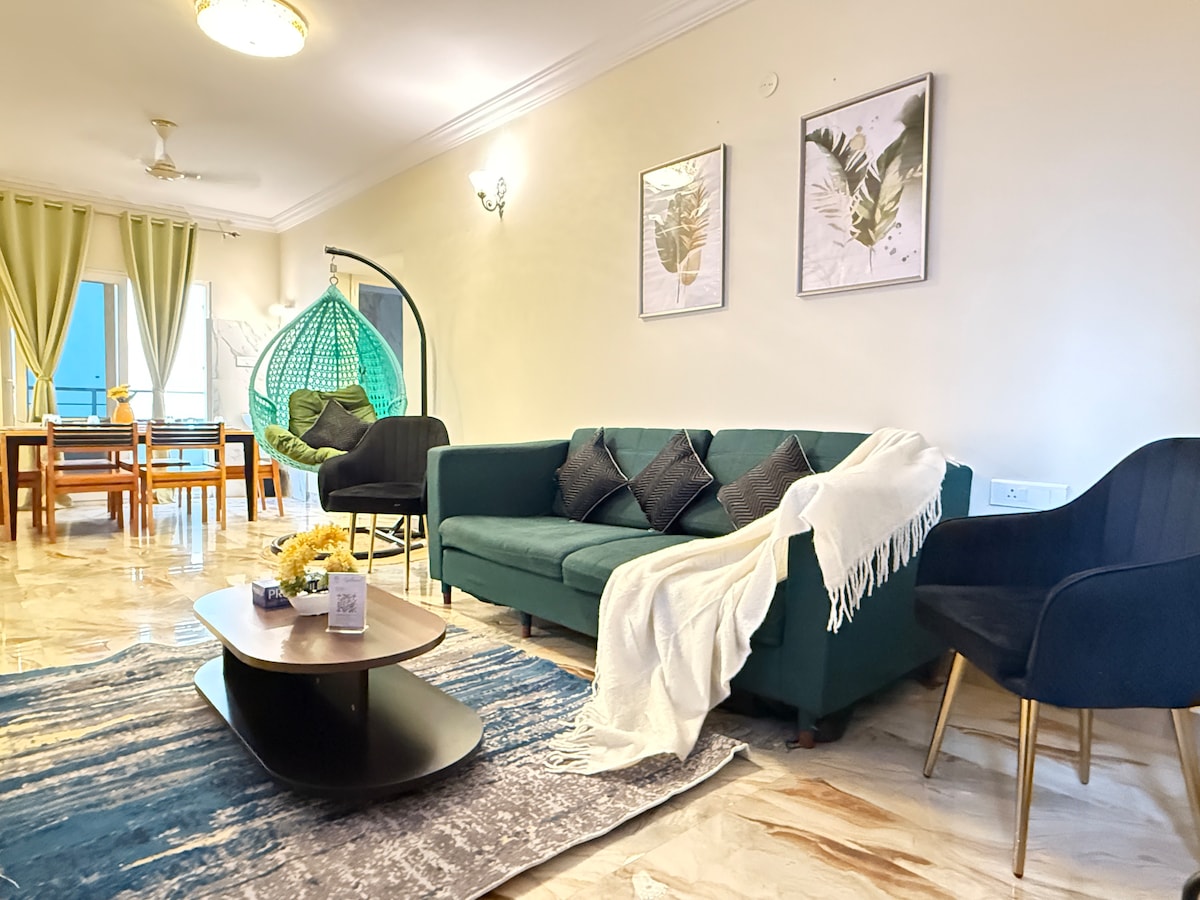 Spacious 3BHK luxury apartment in Kondapur's premier Evara Suites, steps from HITEC City & Gachibowli IT hubs. This 1800 sq ft modern retreat sleeps 7 with premium amenities, high-speed WiFi, private balcony, full kitchen, and free parking—perfect for extended stays, corporate housing, or family getaways in Hyderabad's tech corridor. Good to Know Before You Book: ✔ Suitable for families and groups traveling for vacation, work, or medical purposes 🚫 Parties & Alcohol strictly not allowed