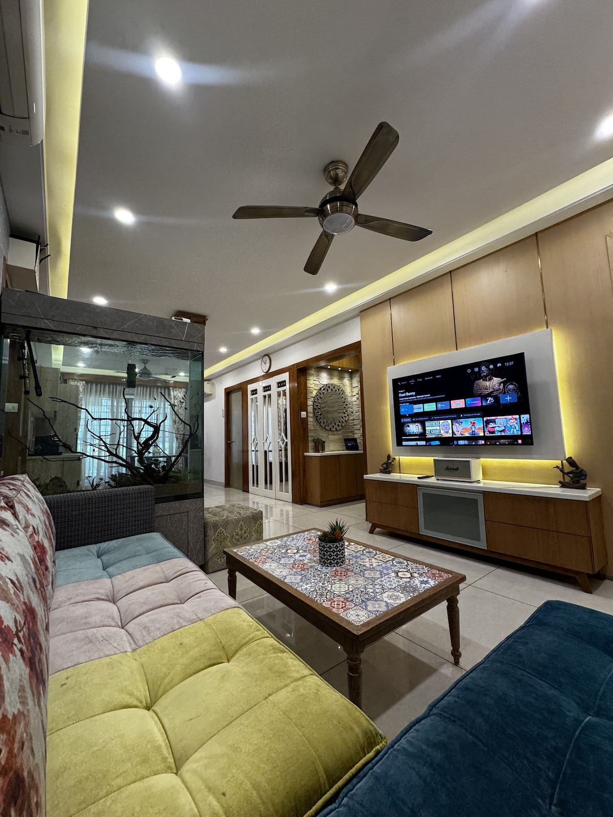 Modern Comfort in the Heart of Hyderabad- Stay steps away from the city’s top attractions, restaurants, and cultural spots in this fully equipped luxurious apartment. The space features a cozy bedrooms, Media Room with 75 Inches TV, Modular sofa, PS4 and well-stocked kitchenette, Wi-Fi, and a comfy bed to recharge after a day of exploring. Perfect for solo travelers, Families, couples looking for convenience and comfort in the city center. Book your stay and experience Hyderabad like a local!