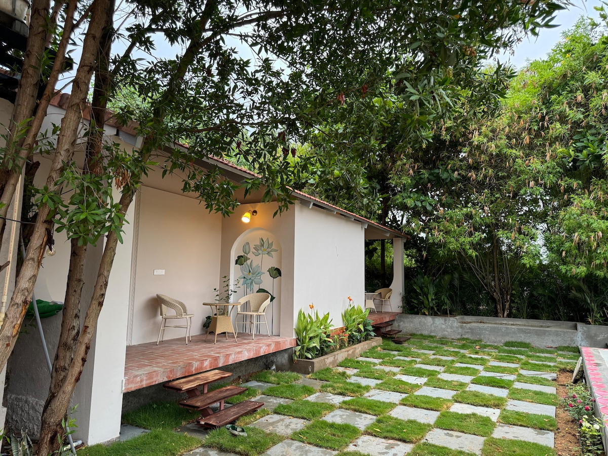 Escape to Serenity Your Ultimate Stress-Free farm stay at Our Cozy Cottage Farm Stay! Indulge in the tranquillity of nature and unwind in our cottage amidst the lake view and stunning sunsets. Whether you seek a serene family getaway or a romantic escape, our upper deck and star-gazing deck provide the perfect setting to create cherished memories. Experience the joy of outdoor living with our equipped outdoor kitchen area!!