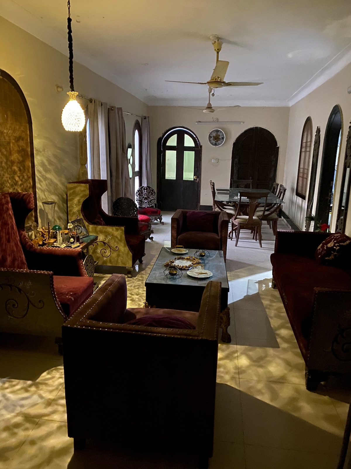 Have fun with the whole family at this stylish place. The rooms are equipped with all modern facilities. The drawingroom and bedroom are decorated keeping in mind the modern look. The ambiance of the place is good to appease the guests. We have a dedicated cook who can cook customized meal on demand. The property is close to all major happenings in Hyderabad yet the vicinity is peaceful and noise free.