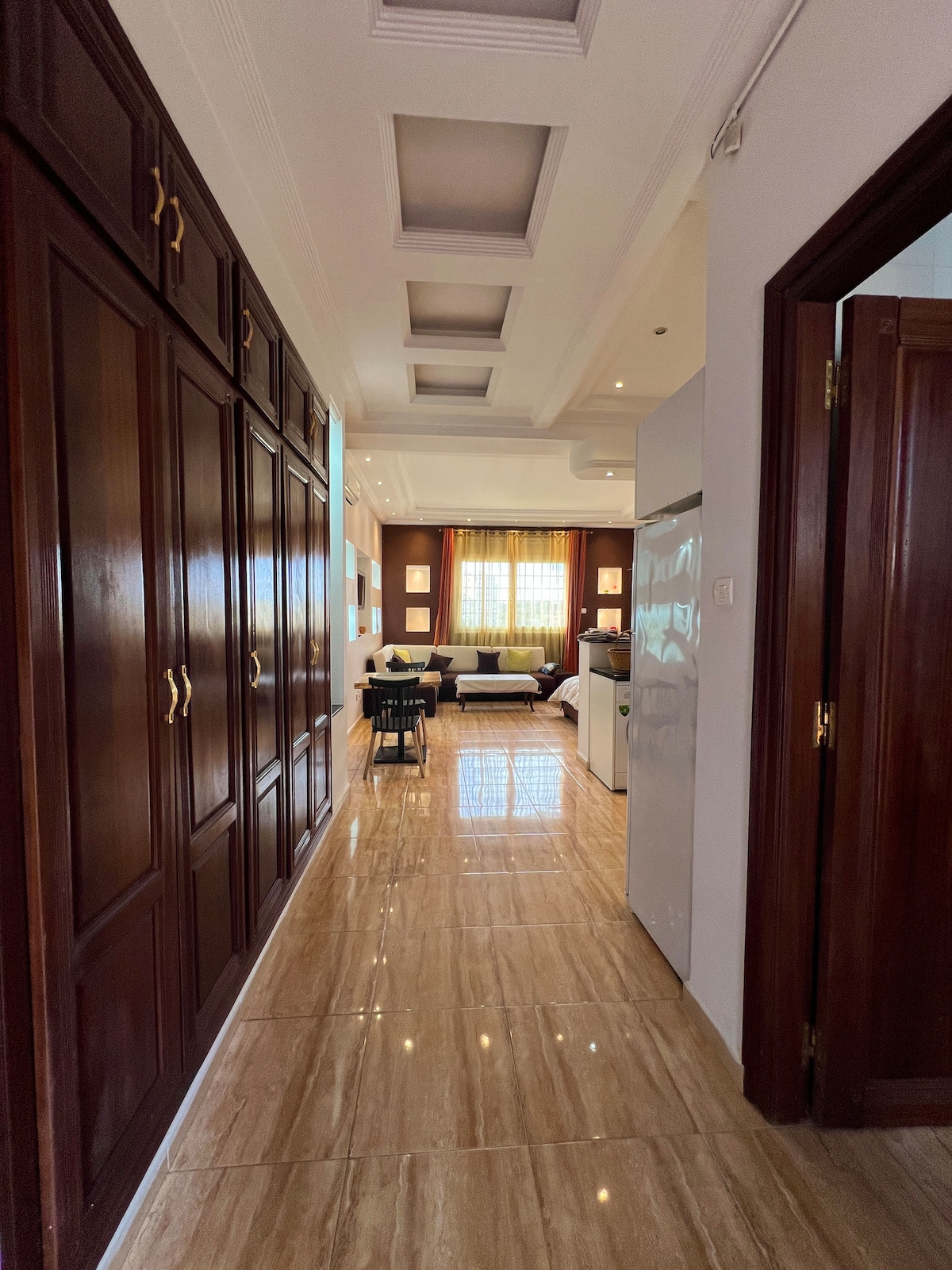 Détendez-vous dans ce logement calme et élégant, d’une superficie de 50m2 en open spaces, Rez de chaussée avec accès indépendant et sans vis à vis, ensoleillé et aéré, dans une petite résidence immobilière privée privée, place parking réservée, entièrement meublé et équipé, chauffage centrale, climatiseurs, cuisine équipée, lave linge, lave-vaisselle, micro-ondes, frigidaire, citerne, wifi, parabole, endroit calme et sécurisé, commerces à proximité, accès rapide autoroute.