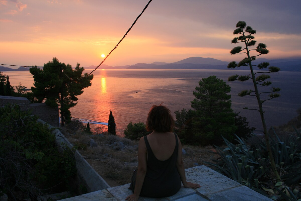 This 19th c house, has been my family's hideout since 1978, hosting 3 generations of us. The property consists of two units. A two storey house & an indepedent guest room in the courtyard (available for booking after 2 guests). Both units open up to a private garden with aromatic herbs, and two terraces offering a breathtaking sea & sunset view towards the Argosaronicos sea to the opposite Peloponnesian coasts. If you seek for peace and privacy and an amazing stargazing, this is the place to be.