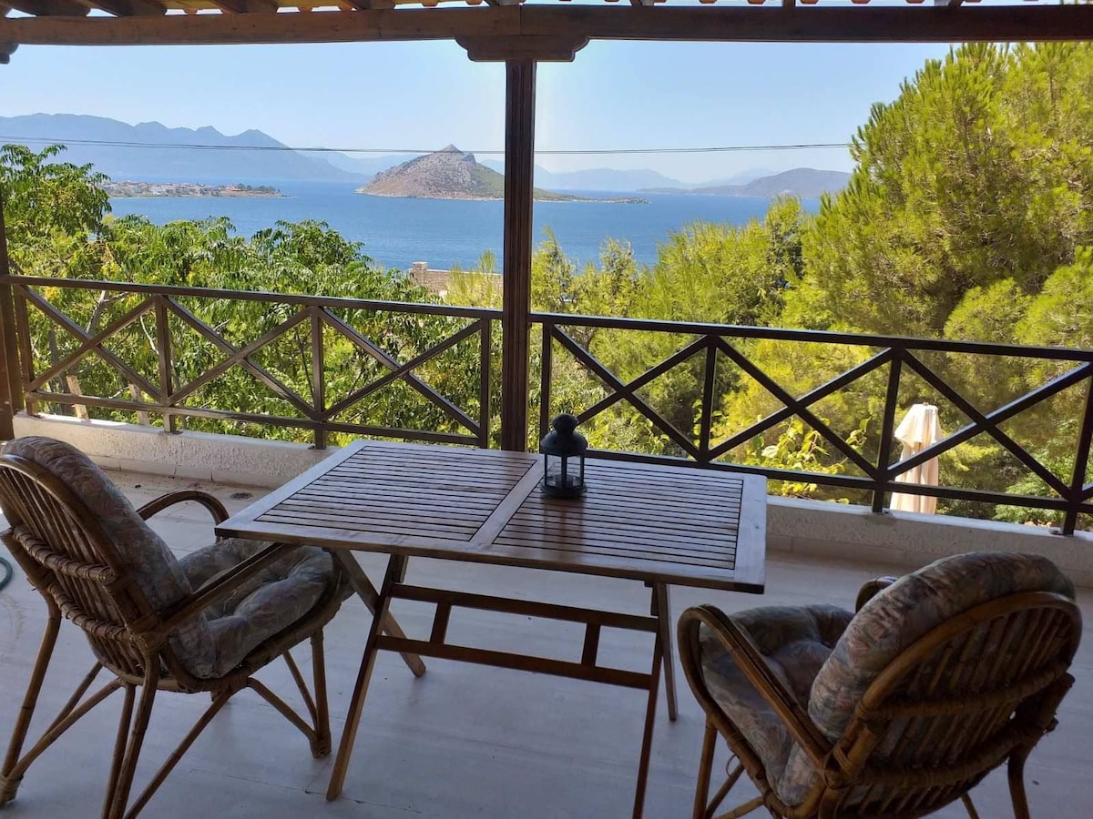 Enjoy this spacious, bright house, its large terrace with a stunning view of the old town of Poros island and the Aegean sea. Relax by the trees in the hammock or outdoor bath while sipping a glass of wine or morning coffee watching the boats go by. Our place is perfect for families and friends. Great spot from which you can explore Poros and Peloponnese. We will share with you the best tips about beaches, nearest 5min walk, restaurants, coffee shops, activities you can do or sites you can visit