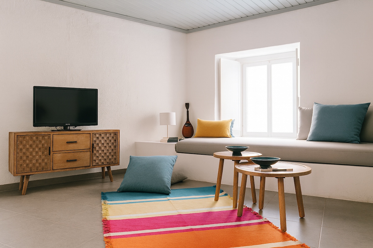 The "House in the center of Hydra" is a two floor apartment, located less than a minute away from the port. Built during the 19th century but recently renovated and redecorated, it is the first year that it is available for rent. The house's original style was maintained and enhanced with contemporary decorative ideas, resulting in a simple and comfortable yet luxurious outcome.