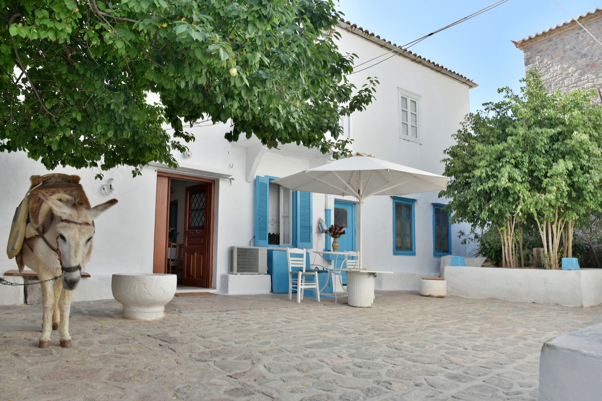 Our house is a traditional, sunny house with two internal courtyards. It is located in a very quiet neighborhood. It is only ten minutes from the port of Hydra and is fully equipped. Four meters from the house there is a small grocery store that operates on Sundays. There are easy access to sandy beaches (Kamini, Avlaki, Mandraki) and to beaches with rocks (Spilia). The transfer of baggage upon arrival and departure will be done by us.