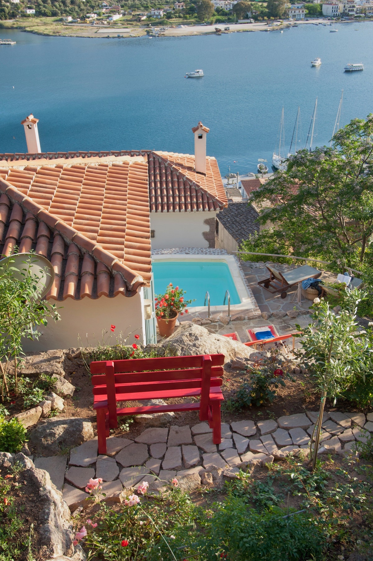 Set in a traditional settlement at the top of the hill this stone house offers a private sun terrace with amphitheater views to the Port and the surrounding area. With a quiet and peaceful place we provide our guests an excellent local staying at the old, historic part of the island.