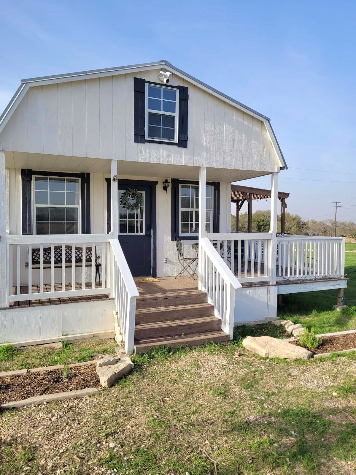 The Hye & Bye offers a truly unique lodging experience. Skip the containers, tiny houses & cabin complexes and enjoy the secluded privacy of a ranch experience .. within single digit minutes of 290’s top wine & bourbon destinations. You’ll love saying HYE …. but dread BYE. Two story three bedroom home with loft and wrap around porch. Perfect for watching sunrises/sunsets, stars, wildlife, and livestock. Working ranch with areas to hike & bike. And PICKLE BALL COURT!