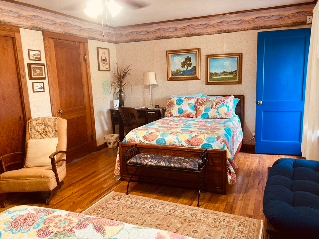 Welcome to your serene retreat! This charming Airbnb cottage offers ultimate privacy with no shared walls and a private entrance. Relax in a luxurious king-size bed after exploring nearby attractions. Prepare simple meals in the convenient kitchenette and unwind in the full bath. Perfect for couples seeking a cozy getaway in a tranquil setting. Discover comfort and convenience at our secluded hideaway! Want to bring friends? There are 6 more cottages available on site!