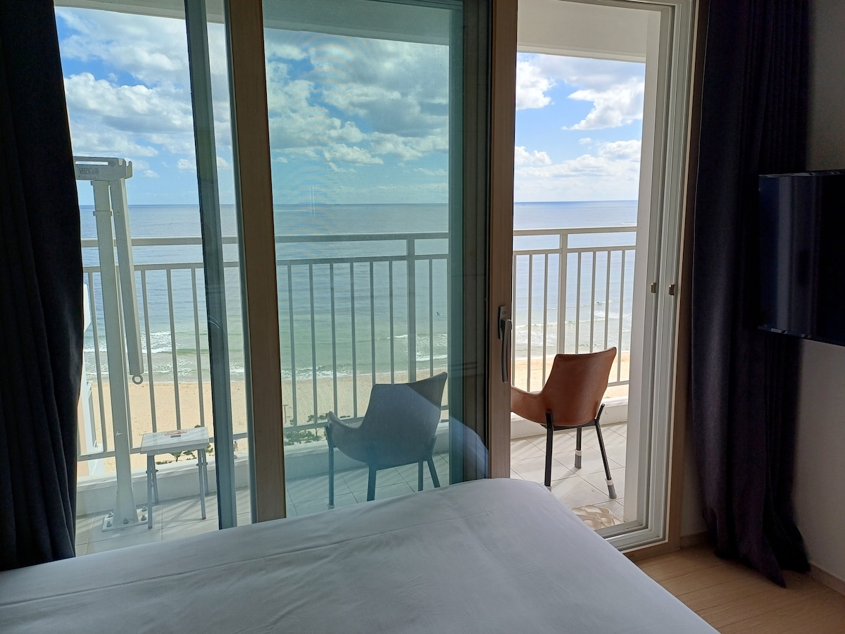 #在江陵全景海景床上看日出。 #超高层海景房#3室#位于Sachon海滩前