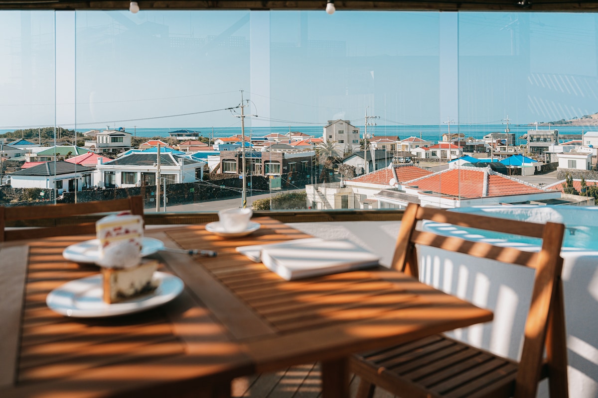 济州岛 挟才 바로바닷가 2 层 比阳岛和海景,为了给你的爱增添幸福的回忆