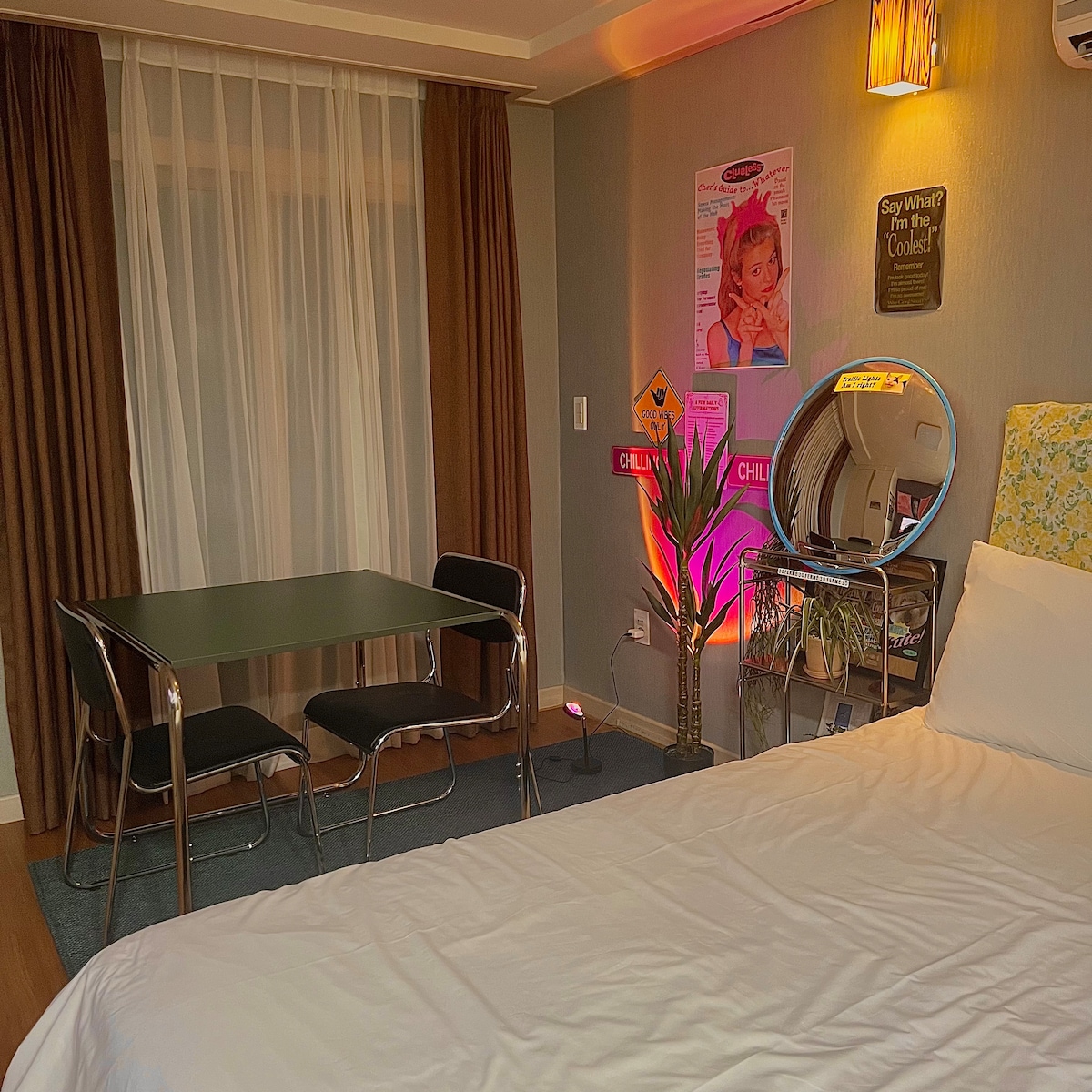 •총 31개의 객실이 한 건물에 있는 호텔형 게스트 하우스입니다. •다양한 객실을 보유하고 있어 혼자/연인/친구/가족이 머물기 좋은 숙소입니다. •밤 10시부터는 매너 시간입니다. **완벽한 방음시설이 되는 숙소는 아니에요~ 게스트의 배려가 필요한 공용 하우스입니다. •모든 객실은 단독 사용이며 객실 안에 욕실이 있습니다. •만 19세 이상만 이용 가능합니다.(2007년 생일 지나야 됨) •만 19세 이상 성인과 동반 시 19세 미만 게스트의 입장이 허용됩니다. •간단 조식 제공( AM 07:00~10:00) •토스트/빵/시리얼/우유/주스/삶은 달걀 /잼/버터/과일/커피/차/ 과자 등 조식 메뉴는 현지 사정에 맞게 변경됩니다~ **매주 일요일은 조식이 제공되지 않습니다. 간단한 스낵과 컵라면을 준비해 드립니다.**