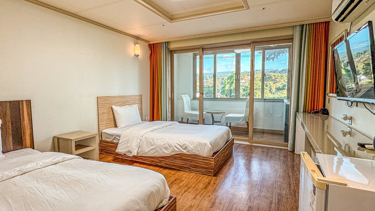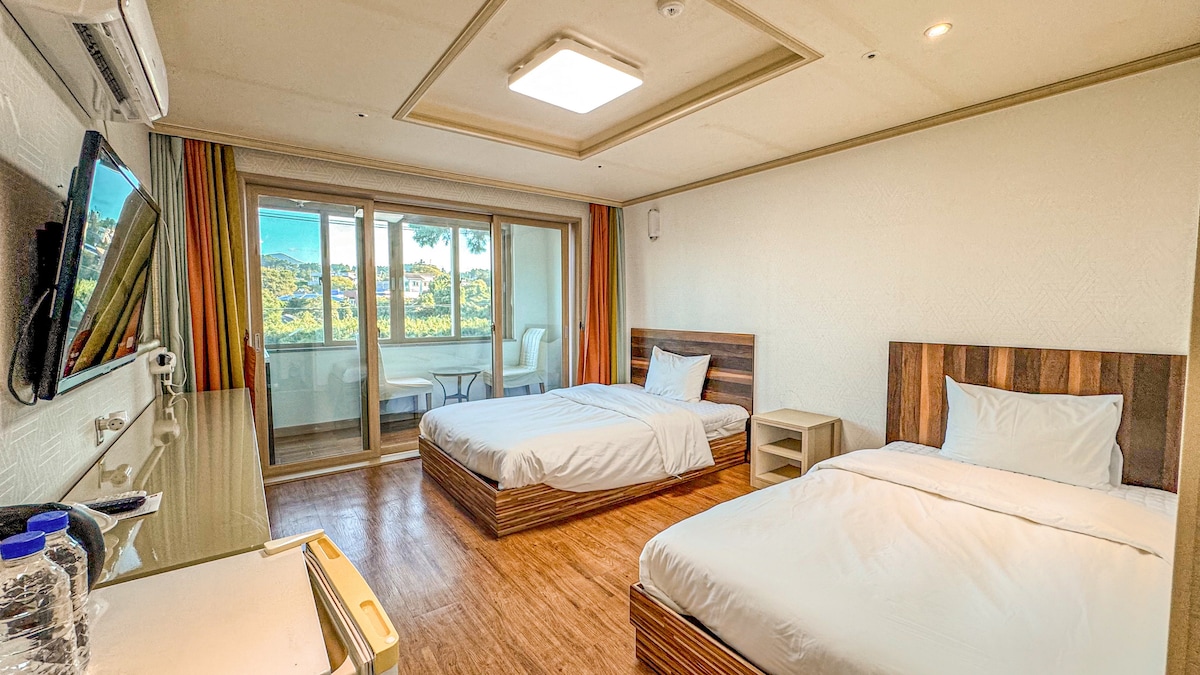 济州市天空酒店_9平区标准双床房(双人床1张+单人床)/靠近Hyeopjae海滩/Geumneung Gwakji海滩
