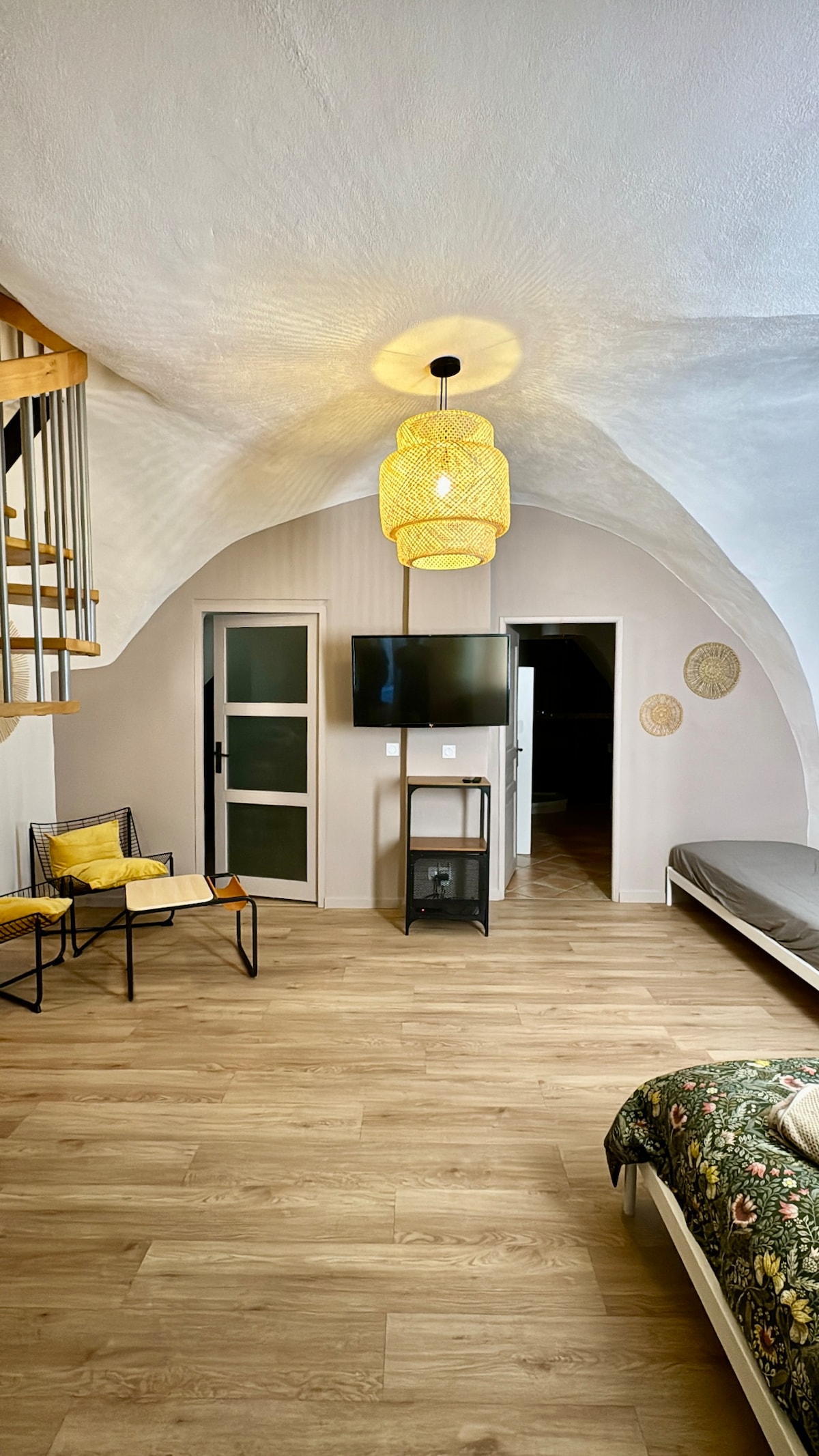 Very nice furnished, renovated and fully equipped apartment of 41M² Ideally located in the heart of downtown Hyères, a stone's throw from Place Clémenceau, it is comfortable and quiet. Decorated with a "Street art & bohemian" theme, it will satisfy you with its many quality facilities to offer you a comfortable stay. Able to accommodate up to 5 guests, it is equipped with high quality equipment (Bosch, SMEG, mosquito nets, etc.) PS: we offer you extras