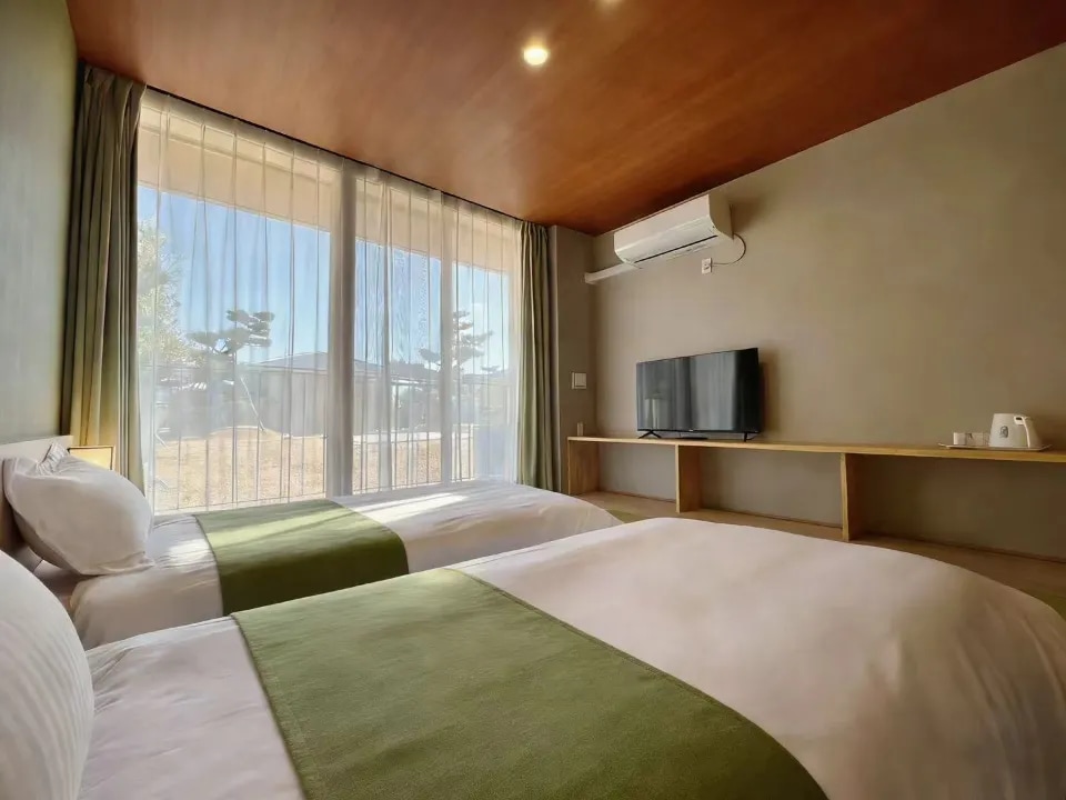 “哇,这真的是民宿的院子吗?”——这是大多数客人走进来的第一反应。这座庭院,源自一位热爱自然的纺织企业家心中的理想家宅。他委托日本代表性的竹中工務店,将自己对宁静生活的憧憬,化为了一座“可以走入的庭院艺术”。如今,4800㎡的院子里,春樱、夏松、秋桂与红叶静静轮回,石灯笼、静水池与白砂砾仍保持着日式禅意的平衡。 🍵 原主屋为 「本馆」,如今是餐厅与茶室,随时欢迎你来此静坐、观景; 🏡 而你入住的 「新馆」,建于2019年,为你准备了舒适现代的起居空间。 在这里,你可以这样度过一天: 🌳 面对庭院,享用一份晨光中的 景观早餐(需预订) 🫖 在本馆茶室,就着一窗绿意,慢慢品尝一杯热茶或咖啡 🍃 骑上自行车(需预约),穿梭于乡间小道,远眺海湾与群山 🛌 在融合了榻榻米与弹簧床垫的床上,收获一夜沉稳好眠 往返交通,也已为你做好了安排: 我们提供 免费接送至日根野站(直达关西机场仅需14分钟); 也可为你预约 优惠的机场直达接送。 这庭院里装着四季流转的风景,也装得下你想要的所有宁静;我们离机场不远,却已将旅途的喧嚣轻轻隔开。 期待与你相遇,在一座有故事的庭院里。