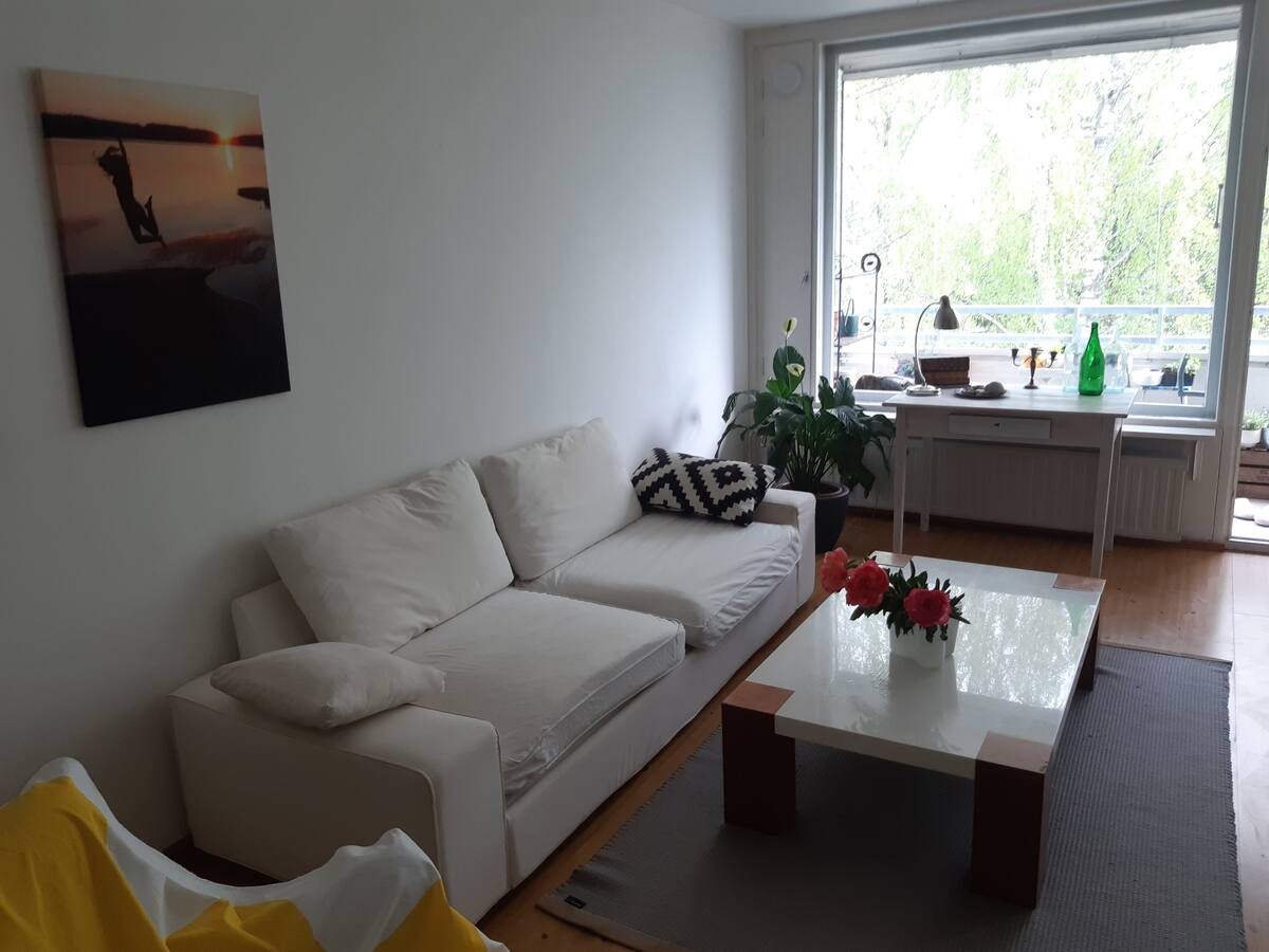 Feel like home at this modern apartment for up to 6 people + You can enjoy a nice open kitchen and living room area, furnitured balcony to see the sunset, and large renovated bathroom + Dishwasher / Washing machine / 2 rooms / 3 double beds + Walk distance to Metro, grocery store & several restaurants + Free parking + Blackout curtains, TV, closets, work desk & beautiful surroundings +Bicycles storage We're friendly hosts and happy to advice what to do in the city Coffee & tea complimentary :)