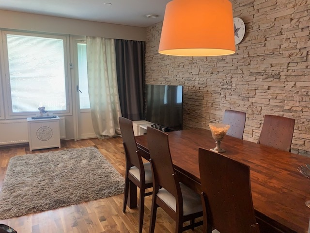 This unique villa fits perfectly to families or several couples. The house is from 1960ies, and represents Alvar Aalto style. There is a separate sauna building with wood burning stove - after the sauna you can chill on 70 sqm terrace and grill yourself a nice dinner listening to the birds singing! The surroundings of the house are very appreciated and calm - however, the bus stops are located only a few hundred meters away! It takes ca 30 minutes to travel to Helsinki City center.