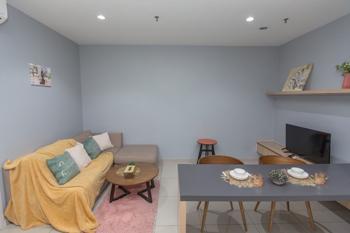 1. Can accommodate 2~3 paxs (additional single foldable mattress +pillow provided)@1 bedroom + 1 bathroom. 2. Bathroom with water heater,shampoo,body bath,towels are provided. 3. 40inch TV(temporary can't see channel-start oct19) 4. Free 1 car Park , 5. Swimming pool ,playground At the 2nd Floor 6. Walking Distance to i City shah alam .Convenient like 7-11 located at UG Level. 7. Check In Anytime After 3pm with self check in method , Check out Anytime Before 12pm. 8.No Netflix💥only Wifi