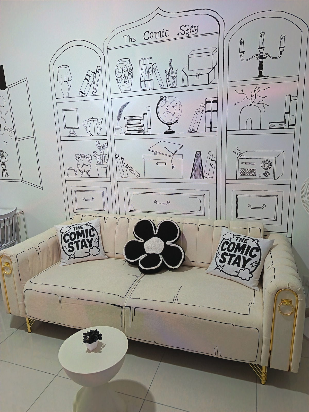 The urban concept studio unit is consists of intertwined havens of comfort furnished with modern two seater sofa, king size bed, queen size bed with modern deco furnishings, dining table with designer dining chair, designer Round Chair & 42" LED TV with Astro Fiber & Android Box (Netflix, youtube, etc)