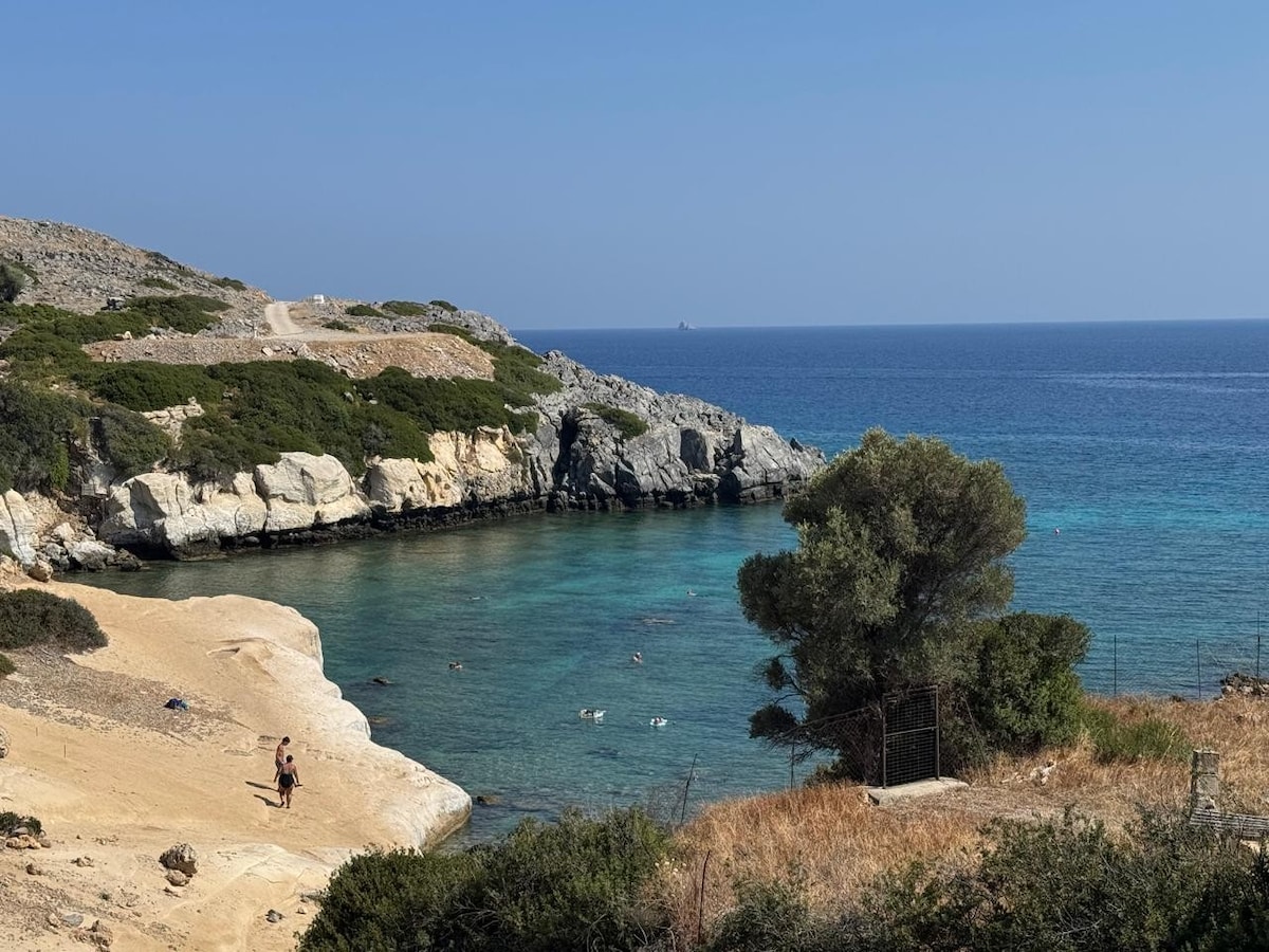 The house is located just 10m from the sea, at Stegna Beach. It has one bedroom with a double bed, living room with a couch - bed, fully equipped kitchen, 2 bathrooms and even a fireplace. there is also a spacious yard with 2 sunbeds so you can rest and sunbathe! it is 100m from the bus stop and the local shops and restaurants. There is also a parking space just outside the house. The city of Rhodes is 32Km away and Lindos is 19Km away, while Faliraki is 15Km.