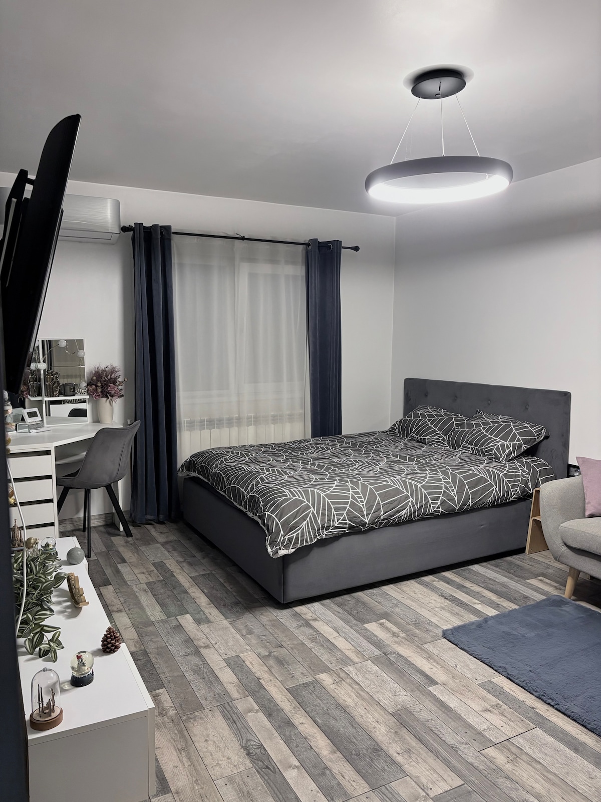 Modern, cozy apartment just 15 min from Iași city centre (Palas & Palatul Culturii), set in a quiet, family-friendly neighborhood with easy public transport links. ✨ Ideal for remote work – dedicated desk space 🐾 Fully pet friendly – bring your dog, cat, or hamster! ☕ Free Wi-Fi, parking & coffee (yes, really!) 🌿 Open layout with soft, calming pastels 🛏️ Comfy bed, fresh linens & a quality mattress Your cozy Iași stay starts here – I’d love to host you!