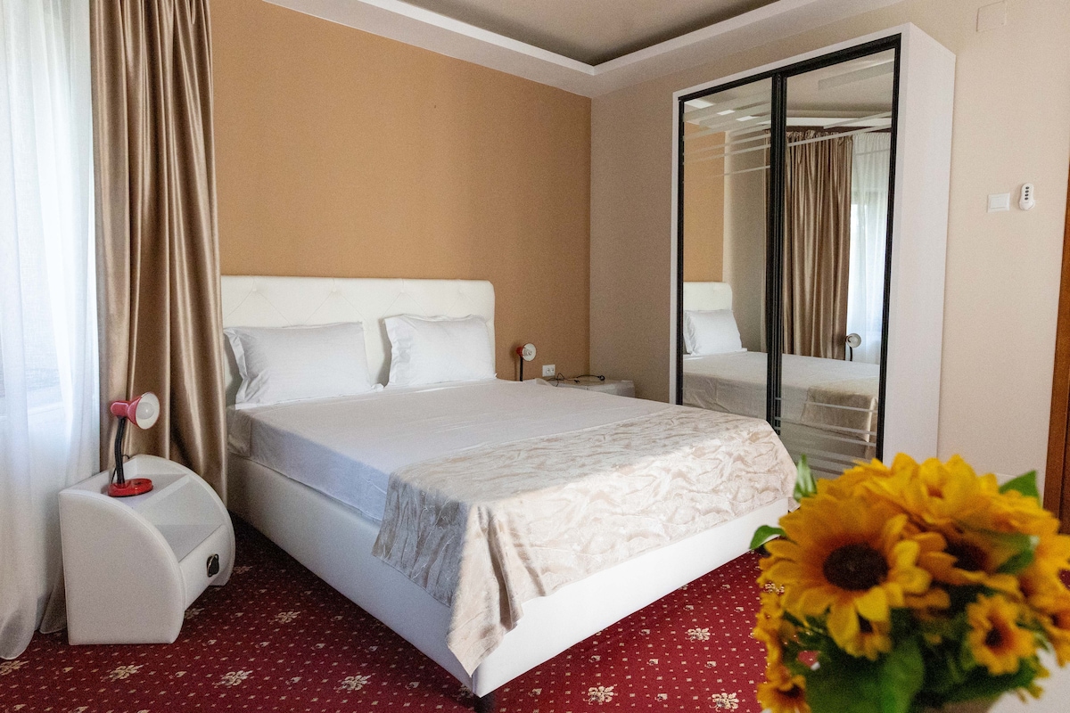 Bine ați venit la Monarc Ne dedicăm să vă oferim o experiență unică de cazare, cu 8 camere duble și apartamente luxoase, care vă vor răsfăța într-un cadru elegant și rafinat. Se oferă la locație WiFi gratuit în toată proprietatea și parcare privată. Unitățile de cazare sunt dotate cu climatizare și au un balcon, un televizor cu ecran plat și o baie proprie cu duş și articole de toaletă gratuite. Unele unități au de asemenea bucătărie cu frigider, cuptor și cuptor cu microunde.