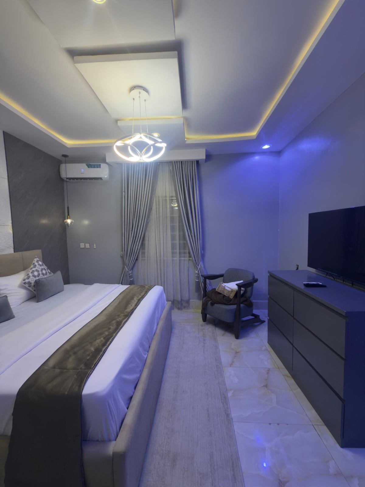 Escape to Olumide’s tranquil oasis in the heart of the city! Our luxury 3-bed apartment with 33Kva Transformer guarantees uninterrupted power supply. Unwind in style with our plush king-sized and two queen-sized retreats, each with en-suite bathrooms, for ultimate comfort. Stay connected with fast Wi-Fi, backed by a standby generator! and Netflix with our 65 & 42" smart TVs, fully equipped kitchen & private balconies. Perfect for long-term stays, families & groups. Book now & relax in style