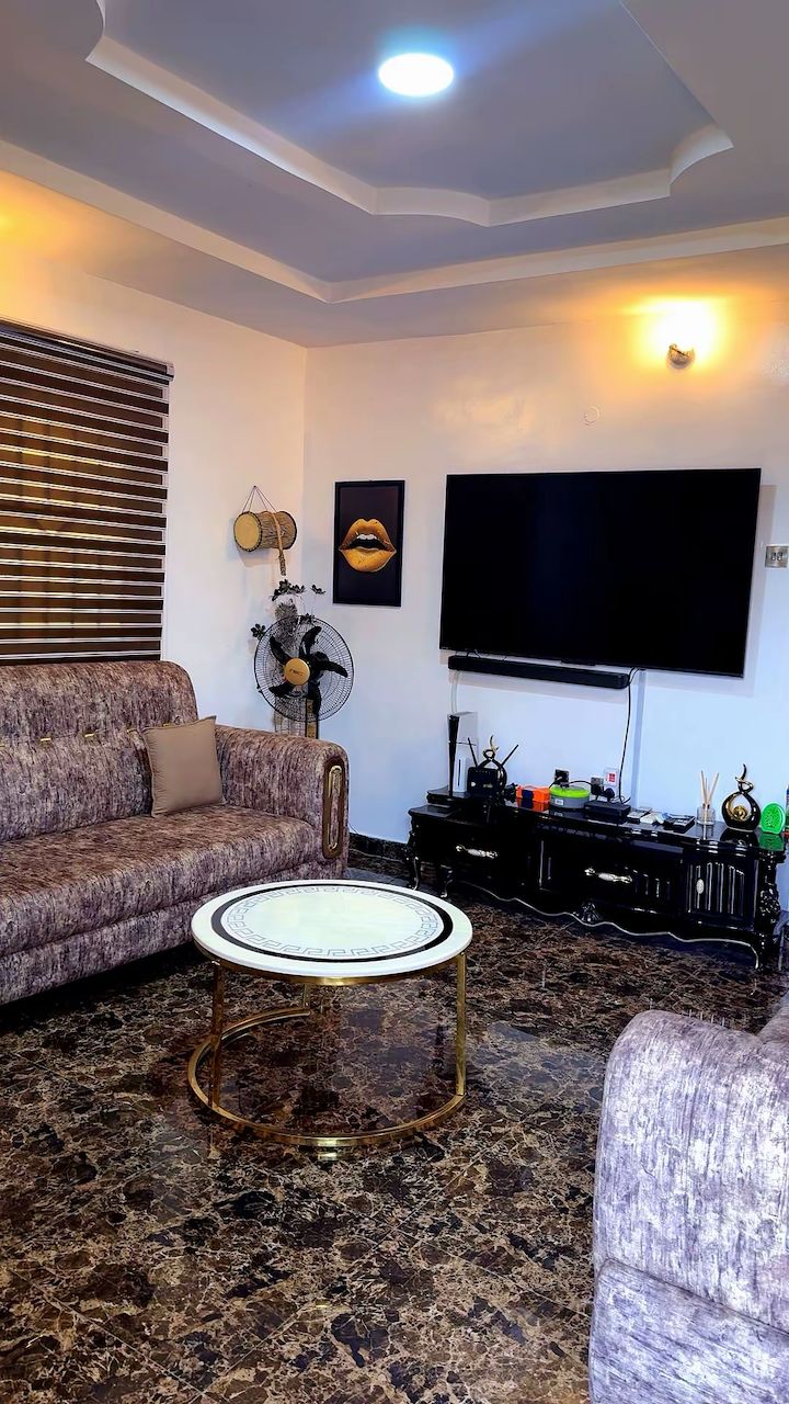 Our 2-bedroom getaway is perfect for couples, friends, families, tourists, and remote workers. Located in a quiet, secure estate at Aare Bodija, just 2–5 mins from key spots in Ibadan. 🎥 Private Cinema 🌅 Outdoor dining area 🔌 24/7 power supply 🛡️ 24/7 security in a gated estate 🚀 180 MB/s Starlink Wi-Fi ❄️ AC in all rooms and living areas 🛏️ Plush Bedding 🎮 PS5 Console 📺 Smart TV in the living room 🍳 Fully Equipped Kitchen 🧼 Washing machine, iron & ironing board 🚗 Free parking space