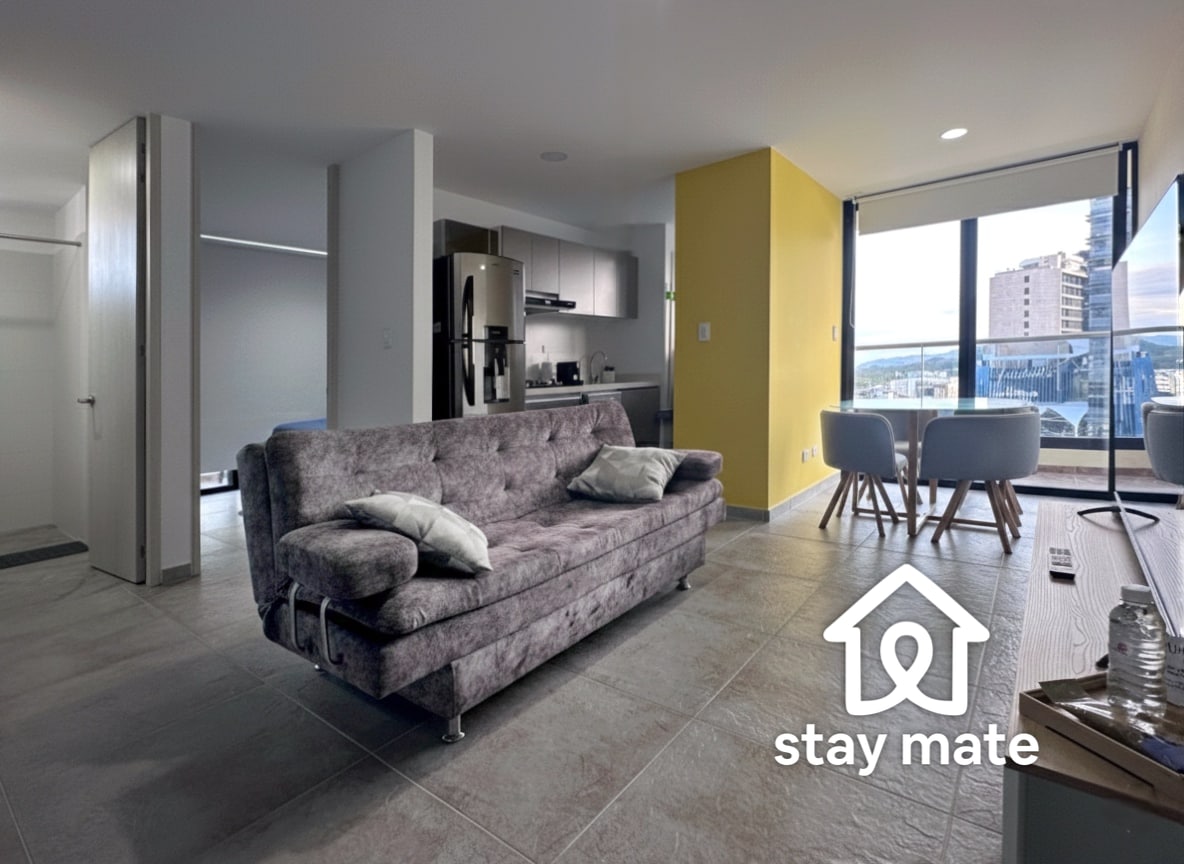 El apartamento cuenta con aire acondicionado y esta ubicado en el piso 18 del edificio más exclusivo de la ciudad. Tiene capacidad para 6 personas. Cuenta con piscina estilo infinity en el piso 20; Turco, sauna, juego para niños, parqueadero, internet, recepción 24 horas, terraza, balde para asados y agua caliente. Excelente vista de la ciudad y montañas. Está cerca al centro, centros comerciales, D1, éxito, Ara, justo y bueno, Etc.