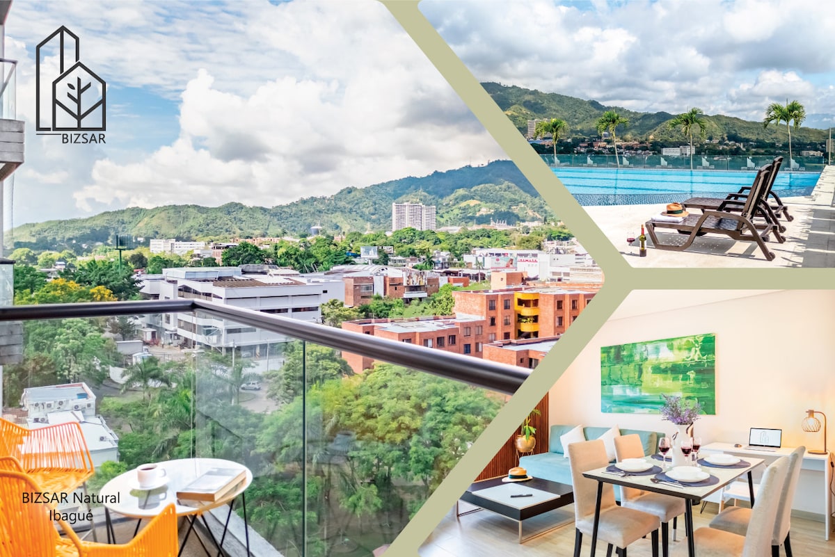 Apartamento moderno de 53 m² totalmente amoblado en zona exclusiva de Ibagué. Cuenta con 1 habitación con baño privado y cama matrimonial, 1 sofá cama amplio, estudio, cocina equipada, balcón con vista, baño social y zona de ropas. A solo 2 cuadras de Multicentro y 8 min de La Estación. Disfruta zonas comunes: piscinas, sauna, gimnasio, BBQ, teatro, juegos infantiles, parque para mascotas, billar y squash. ¡Confort total!