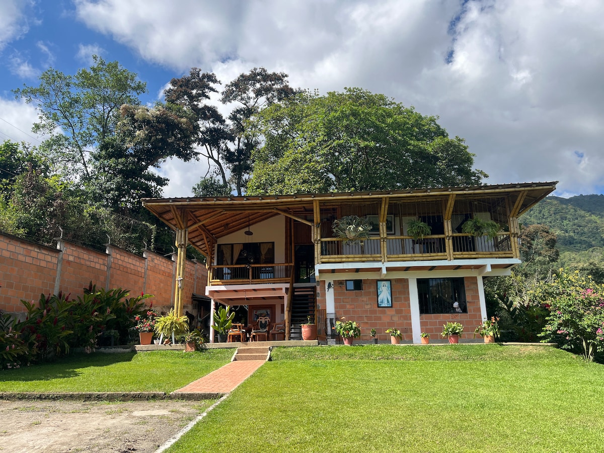 Descansa con tus amigos o familia en esta acogedora casa rodeada de naturaleza donde podrás despertar con el sonido de aves y disfrutar de hermosos atardeceres. Capacidad para 14 personas en 4 habitaciones, así: 3 camas dobles y 5 semidobles (2 personas x cama). 2 habitaciones cuentan con baño, y adicional se cuenta con un amplio baño social. Zona social: Amplia cocina, comedor, sala de estar, deck primer piso y terraza segundo piso, piscina y acceso a quebrada. Amplias zonas verdes.