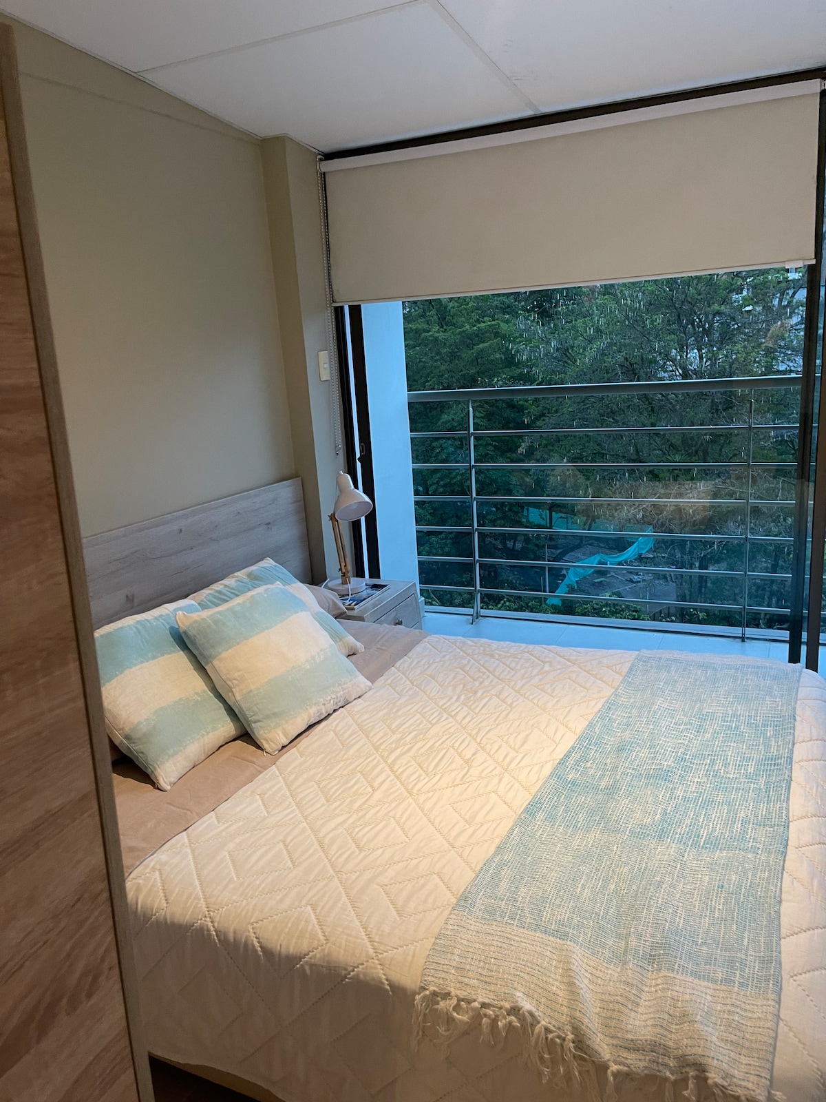 Special studio apartment located in the Jordán 9 stage neighborhood, close to the Multicentro, La Estación and Aqua shopping centers; Adjacent to the main avenues: Guabinal and 69, equipped with a 1 bed for two people and a single sofa bed, with all kitchen utensils, bathroom with glass partition, hot water, internet, Smart TV, large closet, dining bar type American and very illuminated to enjoy the musical city.